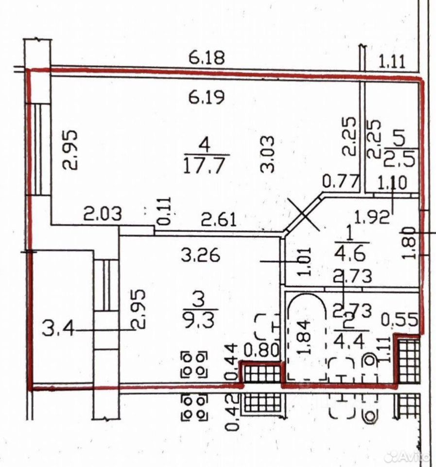 - Комната 18 кв м, кухня 9,3 кв м с выходом на застеклённую лоджию,