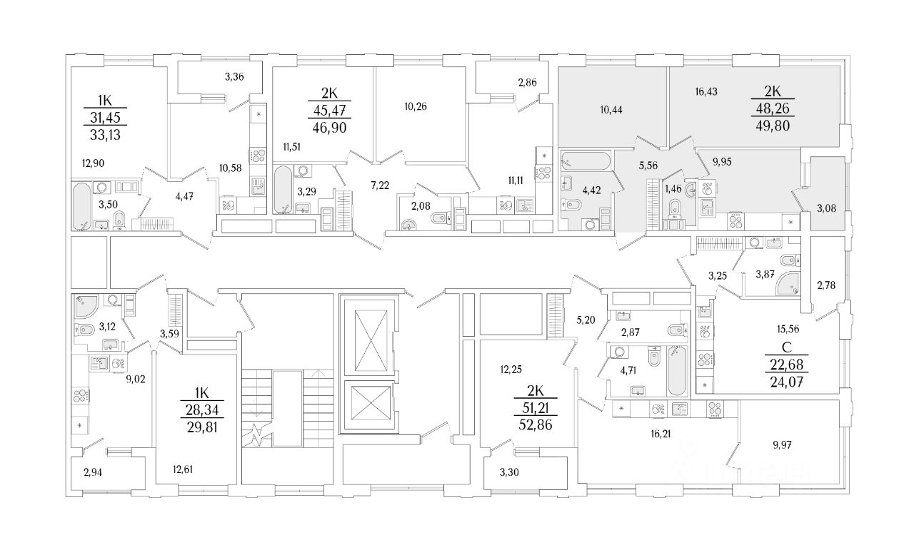 Кухни-гостиные с угловым остеклением. Просторные кухни-гостиные площадью более 20 м². Студии с двумя окнами. Ванные с окном Clerestory. Кухни-гостиные с выделенной нишей под кухню. Спальни с выделенной многофункциональной зоной, в которой можно организовать свой идеальный уголок. Квартиры с просторными лоджиями правильной квадратной формы.