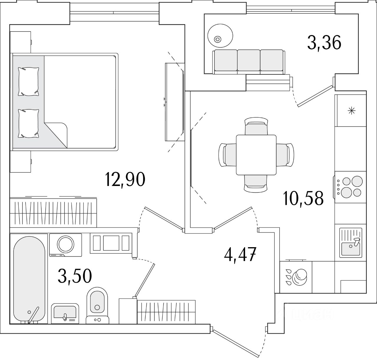 Жилая площадь12,9 м2