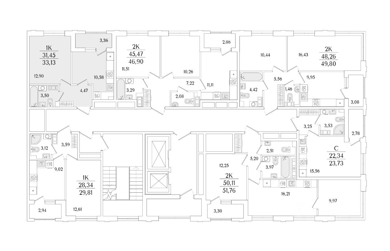 Кухни-гостиные с угловым остеклением. Просторные кухни-гостиные площадью более 20 м². Студии с двумя окнами. Ванные с окном Clerestory. Кухни-гостиные с выделенной нишей под кухню. Спальни с выделенной многофункциональной зоной, в которой можно организовать свой идеальный уголок. Квартиры с просторными лоджиями правильной квадратной формы.