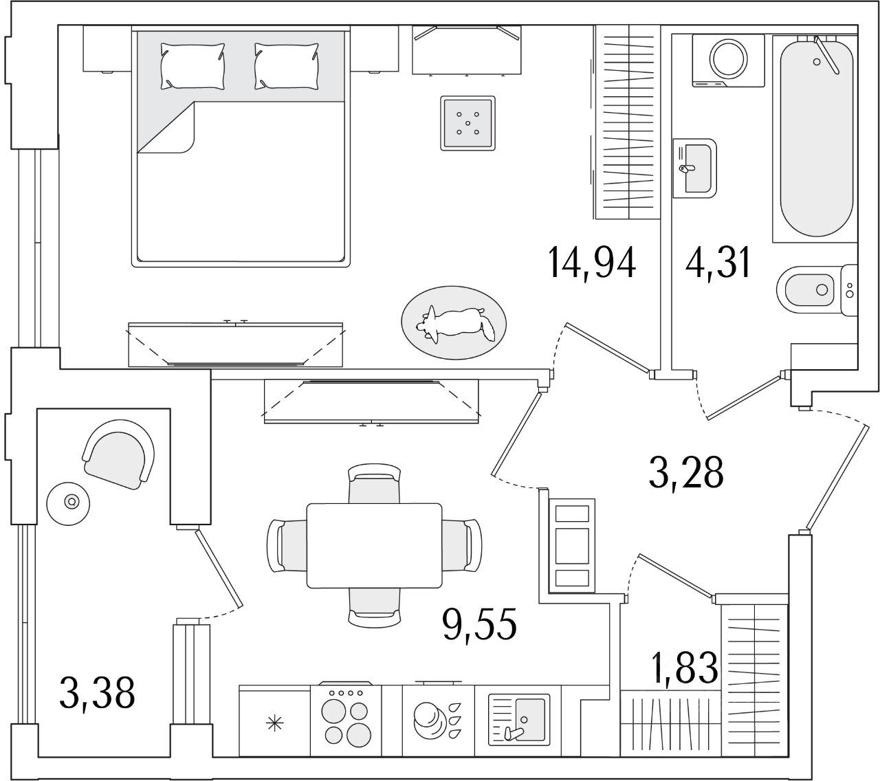Жилая площадь14,9 м2