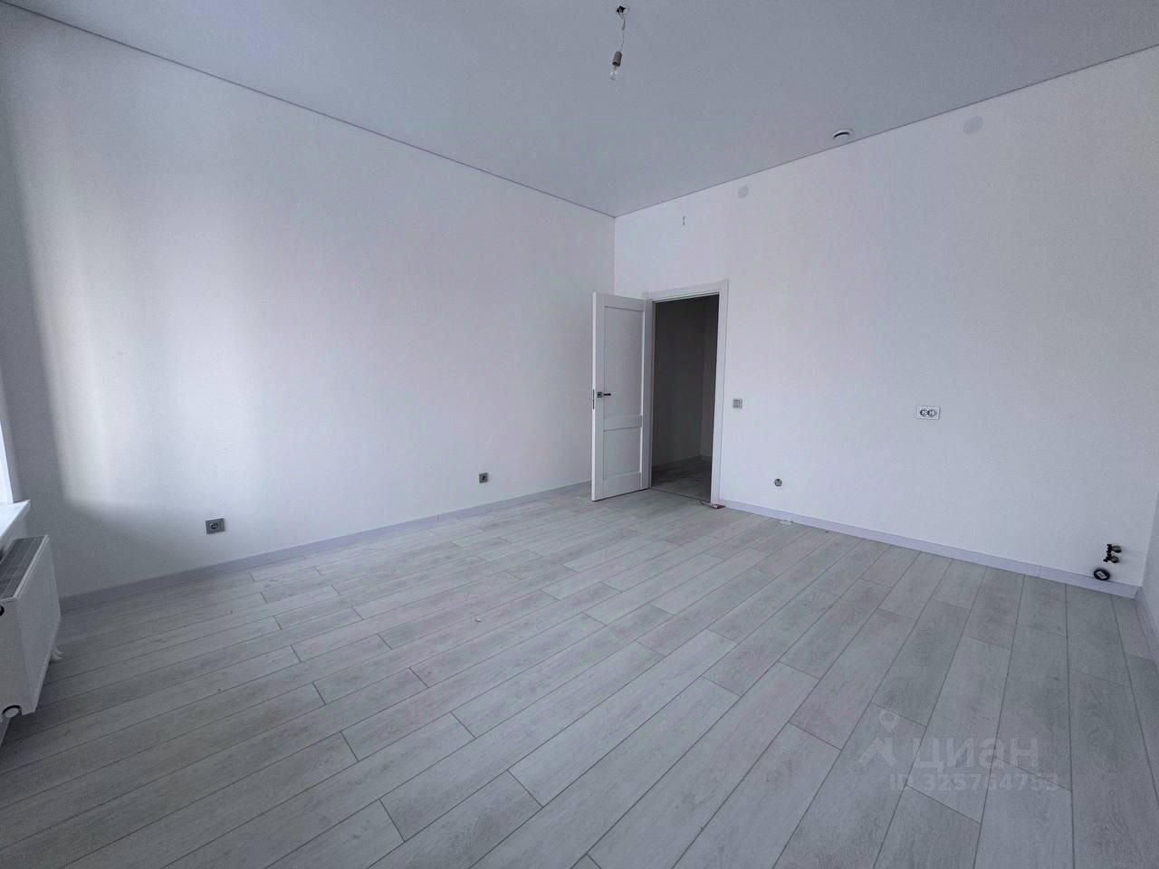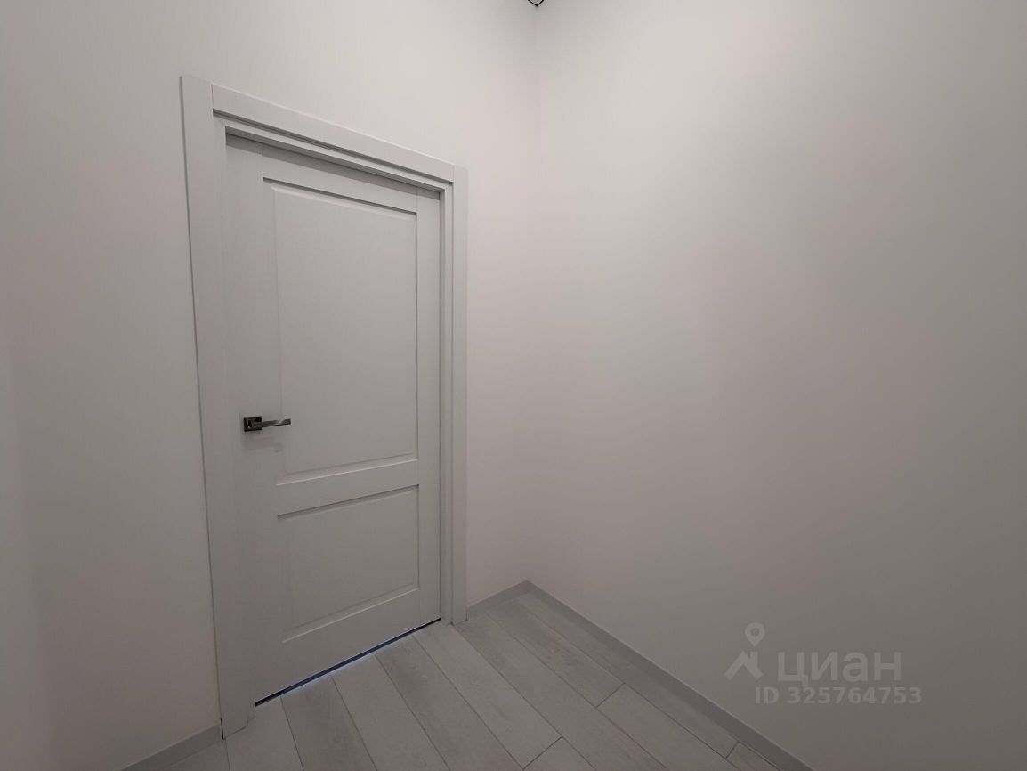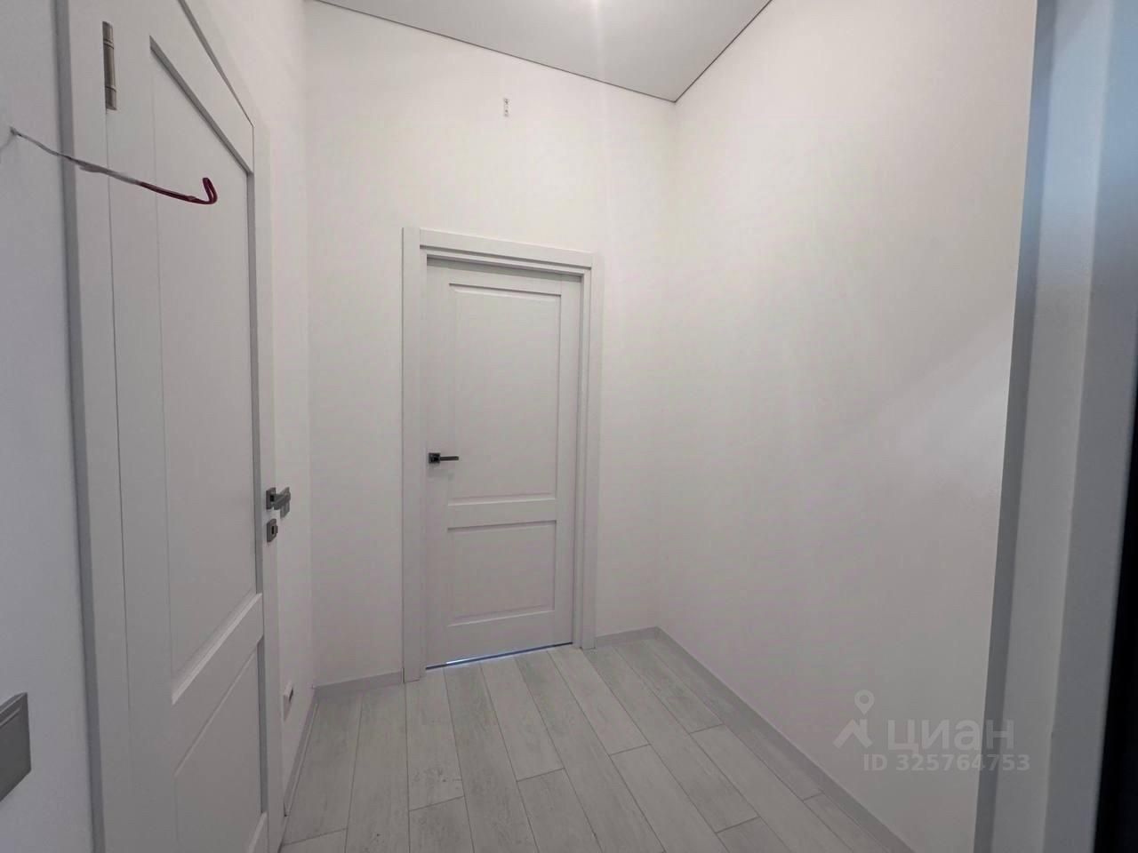 В комнатах флизелиновые обои под покраску, матовые натяжные потолки, современные белые высокие плинтусы с кабель-каналом, а также матовые серебристые выключатели и розетки.
