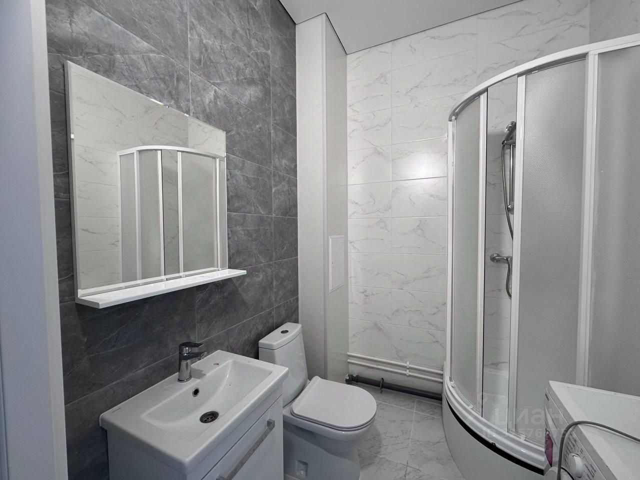 В ванной комнате - крупноформатная керамическая плитка Kerama Marazzi и система теплый пол.
