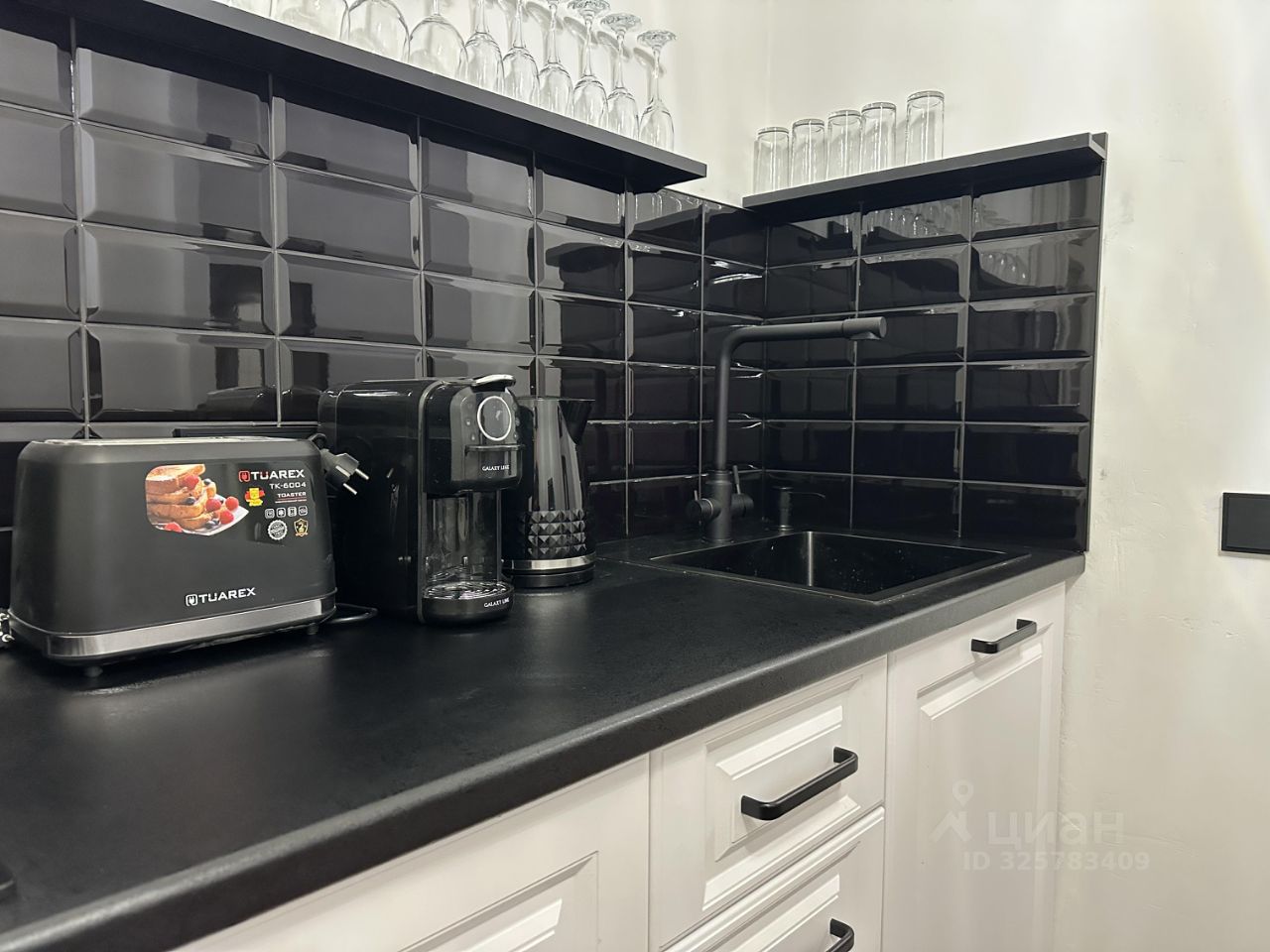 Небольшая кухня оборудованная техникой и посудой для сервировки. В квартире проведен интернет. На период летнего отключения горячей воды в квартире имеется бойлер.