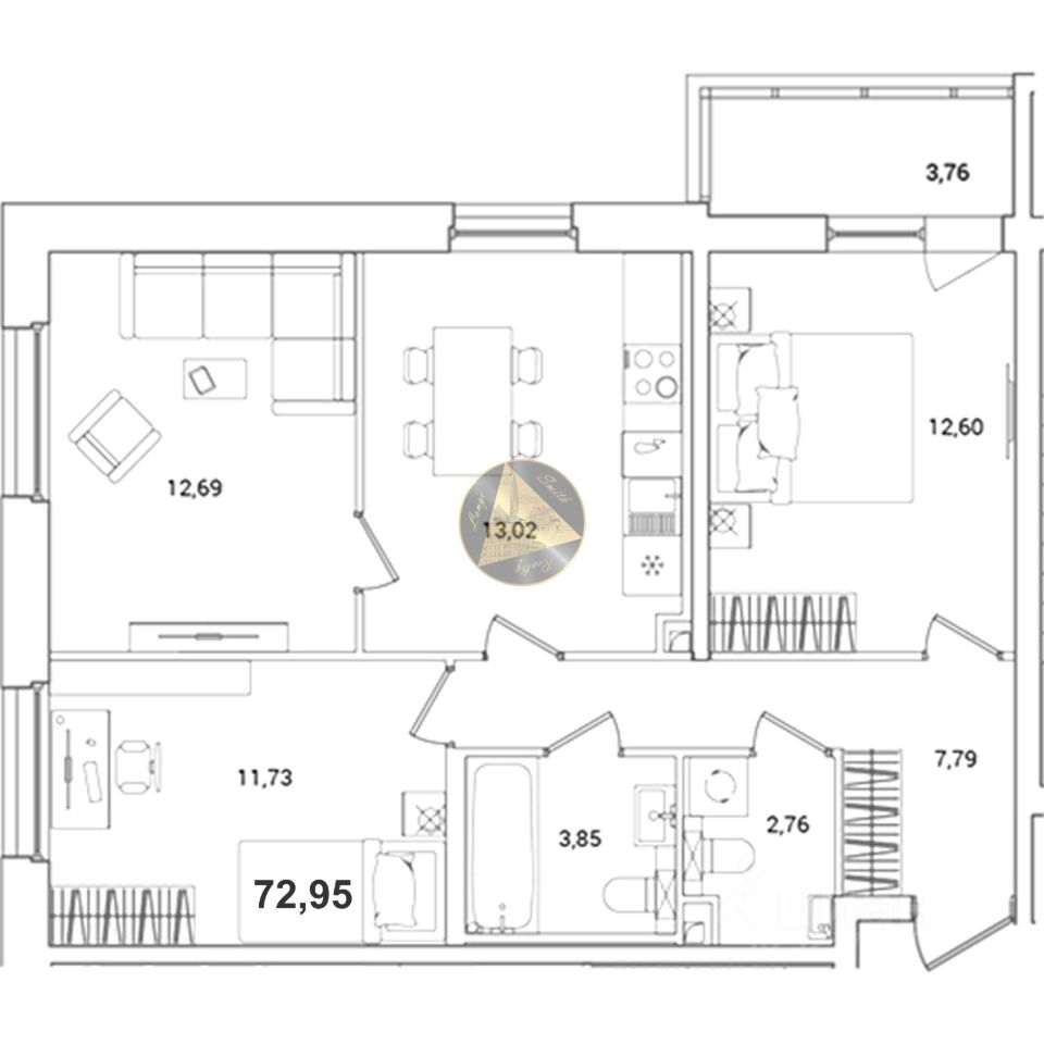 О квартире: - Квартира находится на 4 этаже 25-этажного дома - Общая площадь квартиры 72.95 м2 - Светлая спальня 12.60 м2 - Детские комнаты 12.69 и 11.73 м2 - Просторная кухня 13.02 м2 - Раздельный санузел 3.85 + 2.76 м2 - Застекленный балкон 3.76 м2