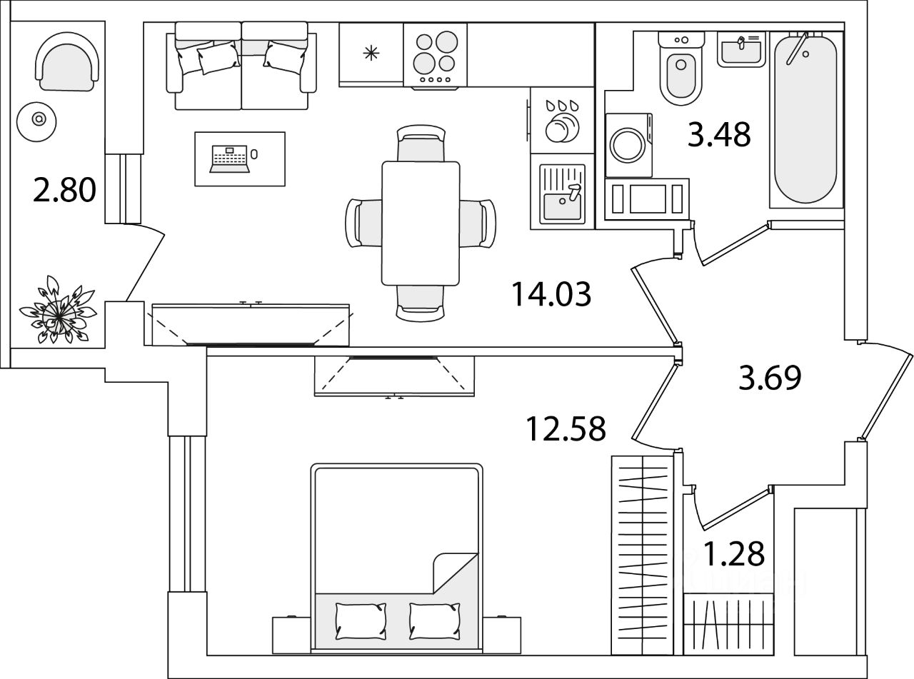 Жилая площадь12,6 м2