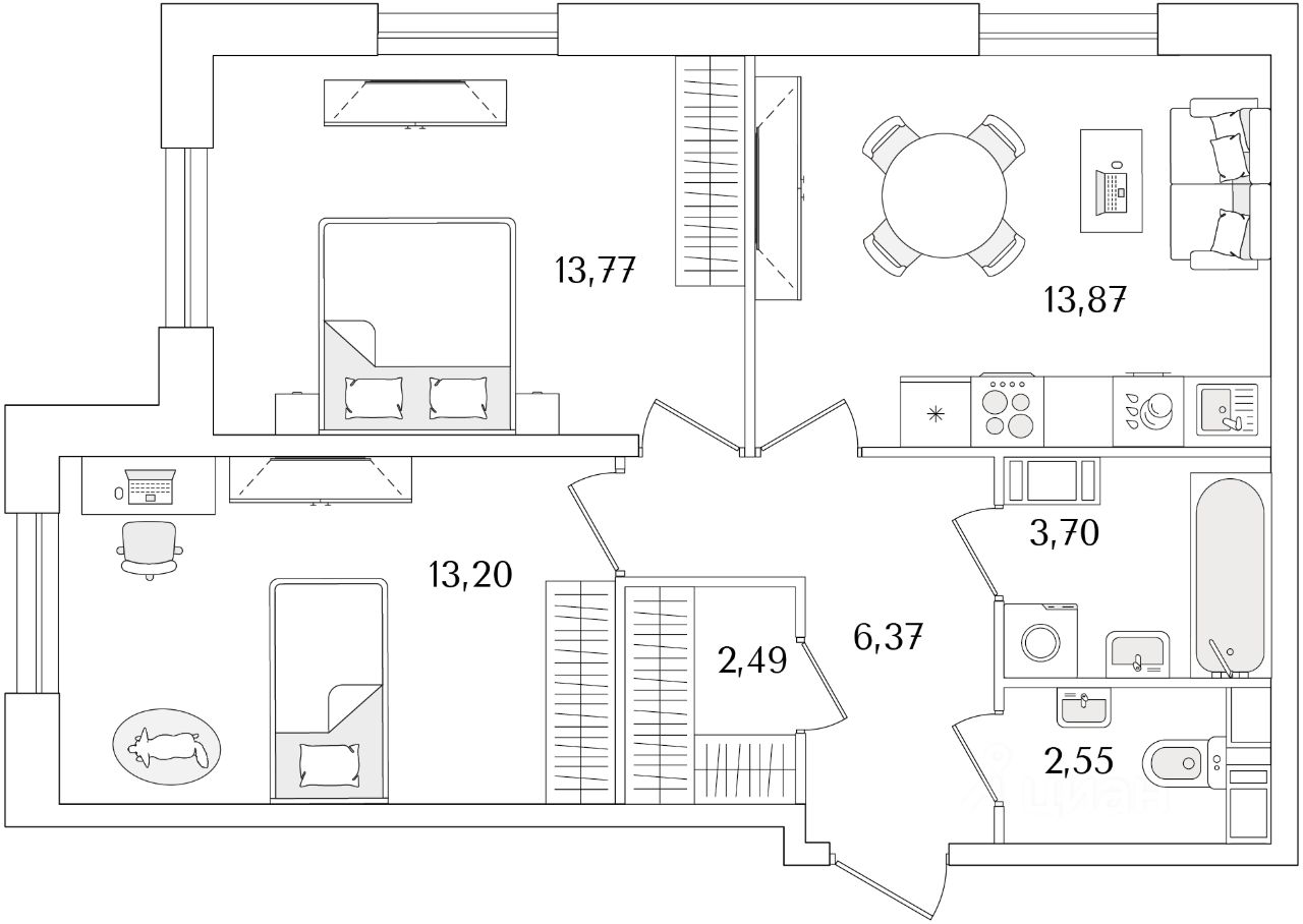 Общая площадь55,95 м2