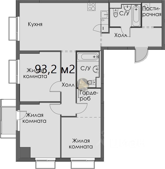 О квартире: - Квартира находится на 5 этаже 12-этажного дома - Общая площадь квартиры 93,2 м2 - Уютная спальня 12,3 м2 - Детская комната 11,6 м2 - Гостевая комната 9,4 м2 - Просторная кухня-гостиная 24 м2 - Раздельный санузел 3,8 м2 + 4,5 м2 - Постирочная 2,7 м2