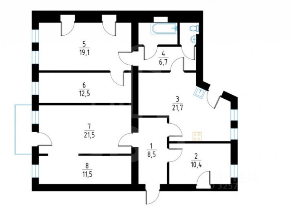 В прямой продаже 5-тикомнатная квартира 118,4 кв.м.