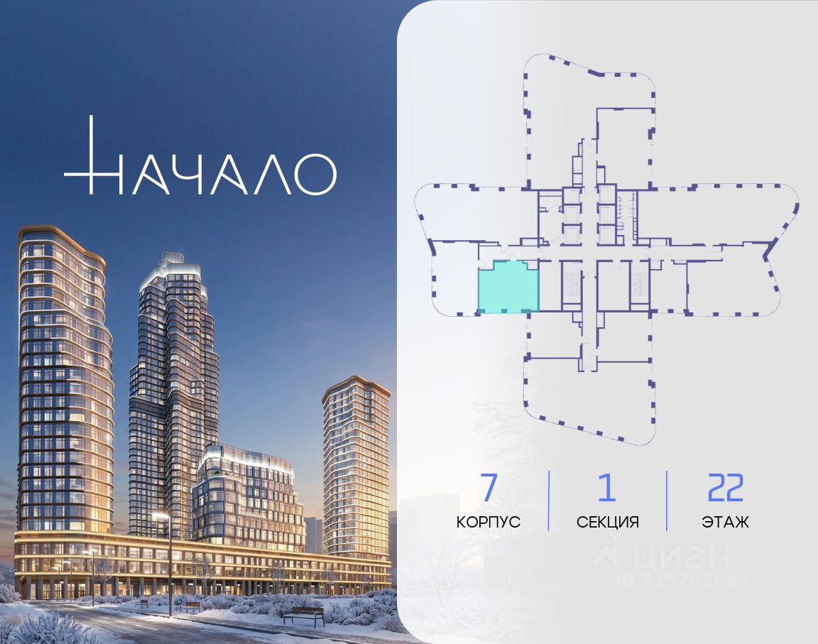 В престижном районе Пресня, на перекрестке делового и исторического центров Москвы, продается однокомнатная квартира площадью 58.70 кв. м без отделки. Квартира находится на 22 этаже 48-этажного дома, в новом элитном жилом комплексе ''Начало'' от девелопера ''Донстрой''. Реализация проекта запланирована на 1 квартал 2030 года.