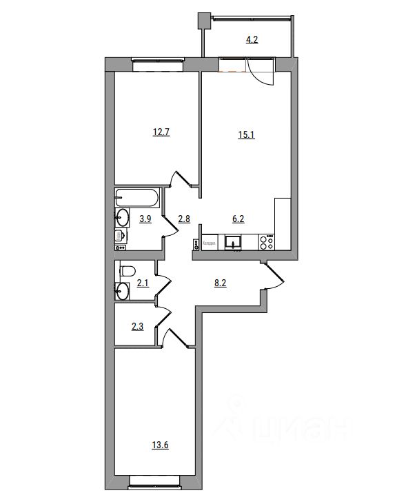 3-комнатная, 71.1 м², 58 по адресу Парковая, 1б Тип дома: Кирпич. Жилой комплекс ''Сити Парк''Преимущества покупки квартиры в новостройке напрямую от застройщика КСМ: