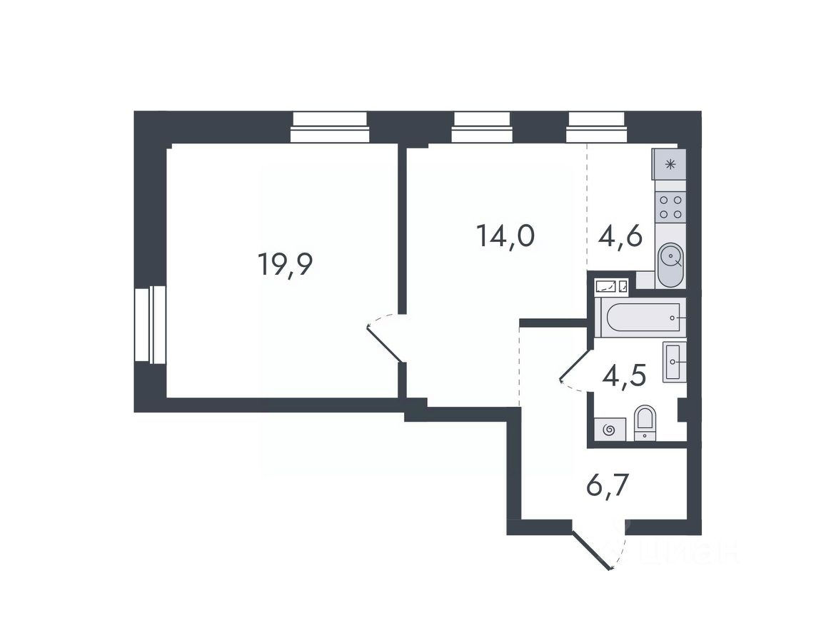 Жилая площадь33,9 м2