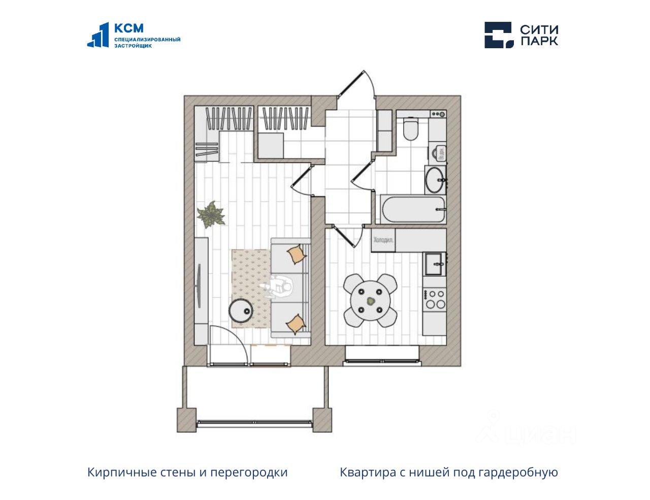 1-комнатная, 38.3 м², 78 по адресу Парковая, 1б Тип дома: Кирпич. Жилой комплекс ''Сити Парк''Преимущества покупки квартиры в новостройке напрямую от застройщика КСМ: