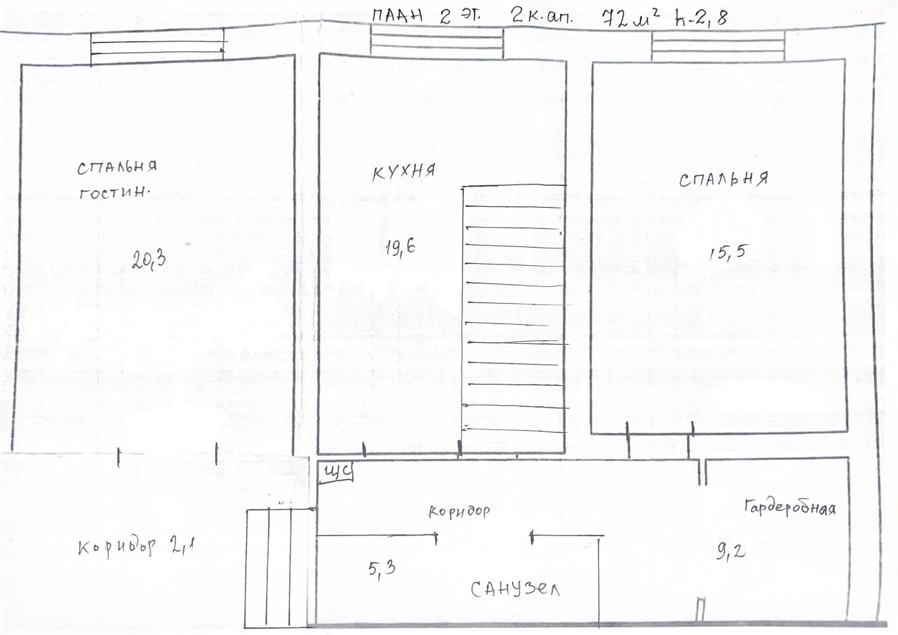 Апартаменты расположены на 2 этаже двухэтажного дома. Отдельный независимый вход • Общая площадь — 72м² • Большая спальня-гостиная • Отдельная просторная спальня • Гардеробная • Высота потолков — 2.
