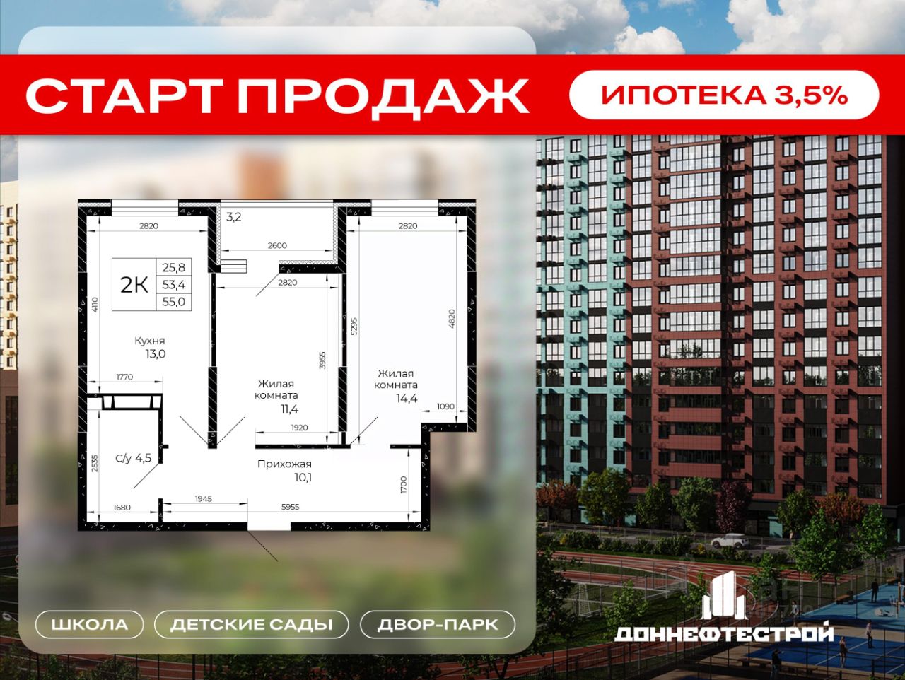 Продаётся 2-комнатная квартира в строящемся доме (Литер 4.2), срок сдачи: IV-кв. 2028, общей площадью 55 кв.м., на 15 этаже. Город стремительно развивается. Мы вместе с ним. Инфраструктура города пополняется новыми сервисами и полезными опциями, которые позволяют нам получать всё необходимое рядом с домом. В основе концептуального подхода СК ''ДОННЕФТЕСТРОЙ'' к развитию микрорайона ''Флора'' лежит формирование современного жилого и общественного пространства, интегрированного в живописную экологически благоприятную территорию на площади 30 гектаров. Вместе с жильём создана необходимая социальная, транспортная и коммерческая инфраструктура. В составе ''Флоры'' - два детских сада, трёхэтажная школа, физкультурно-оздоровительный центр, двор-парк с ландшафтным дизайном и фонтан.