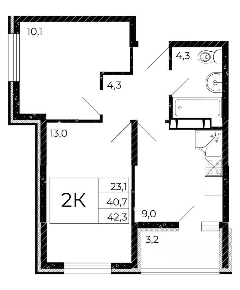 Общая площадь42,3 м2