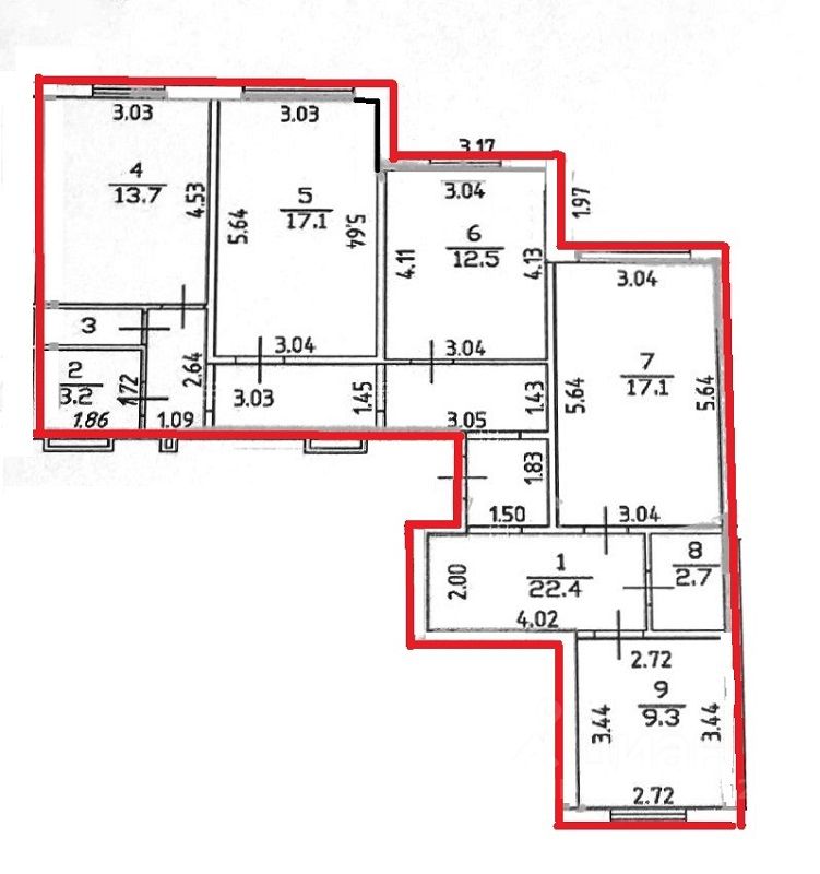 В продаже просторная 4-х комнатная квартира 100 кв.м с уникальной планировкой в Красногвардейском районе Санкт-Петербурга. Дом расположен в новом быстро развивающемся районе с уже сложившейся инфраструктурой. Рядом расположен торговый центр, сетевые магазины, поликлиники, детские сады, школы, паркинги. До станции метро Гражданский проспект 15 минут на общественном транспорте. В 5-ти минутах выезд на КАД. Квартира двухсторонняя, расположена на высоком 1-м этаже монолитного дома Все комнаты изолированные: 17,1 кв.м, 12.5 кв.м, 17,1 кв.м и 9,3 кв.м. Кухня 13,7 кв.м, большой коридор, раздельный санузел, просторный холл 22,4 кв.м, кладовая 2,7 кв.м. Высота потолка 2,75.