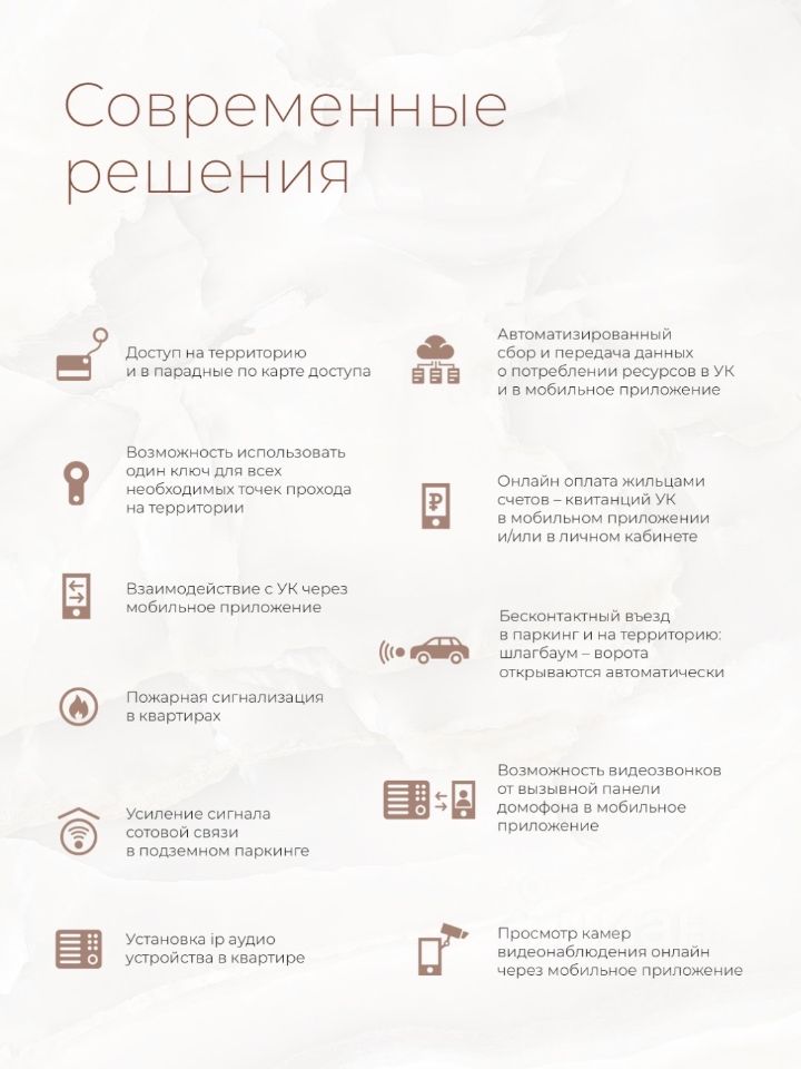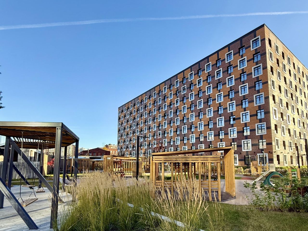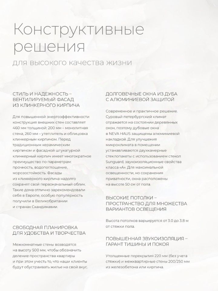 Фасады из клинкерного кирпича, класс энергоэффективности A и премия GreenZoom, сплит-лоджии на каждом этаже для установки блоков систем кондиционирования, премиальные бесшумные лифты Kone, ведущие в подземный паркинг напрямую с этажа.