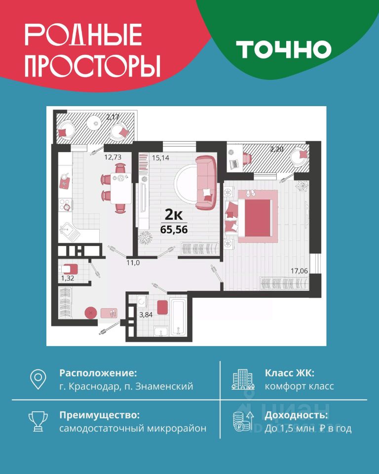 Общая площадь65,56 м2