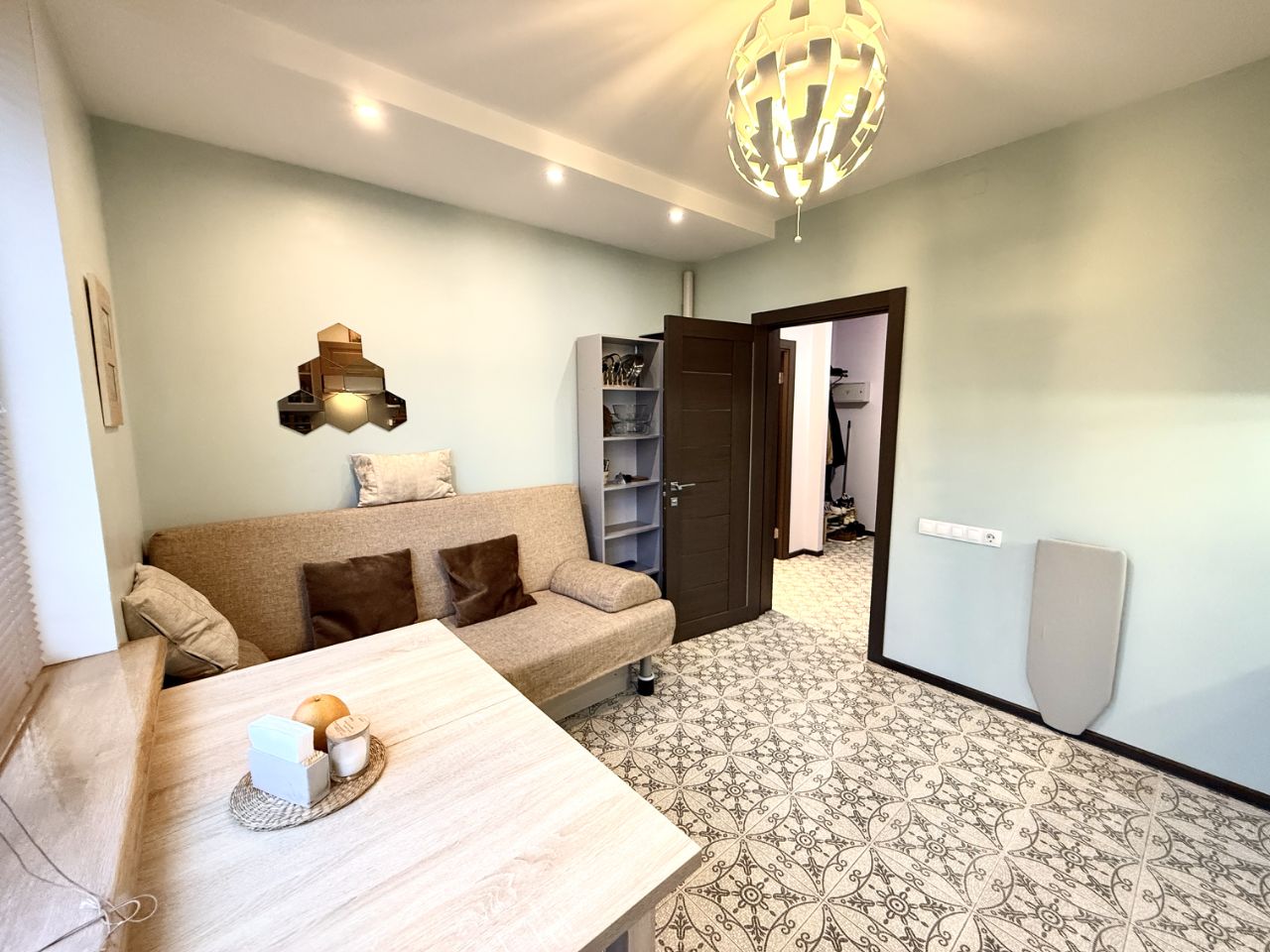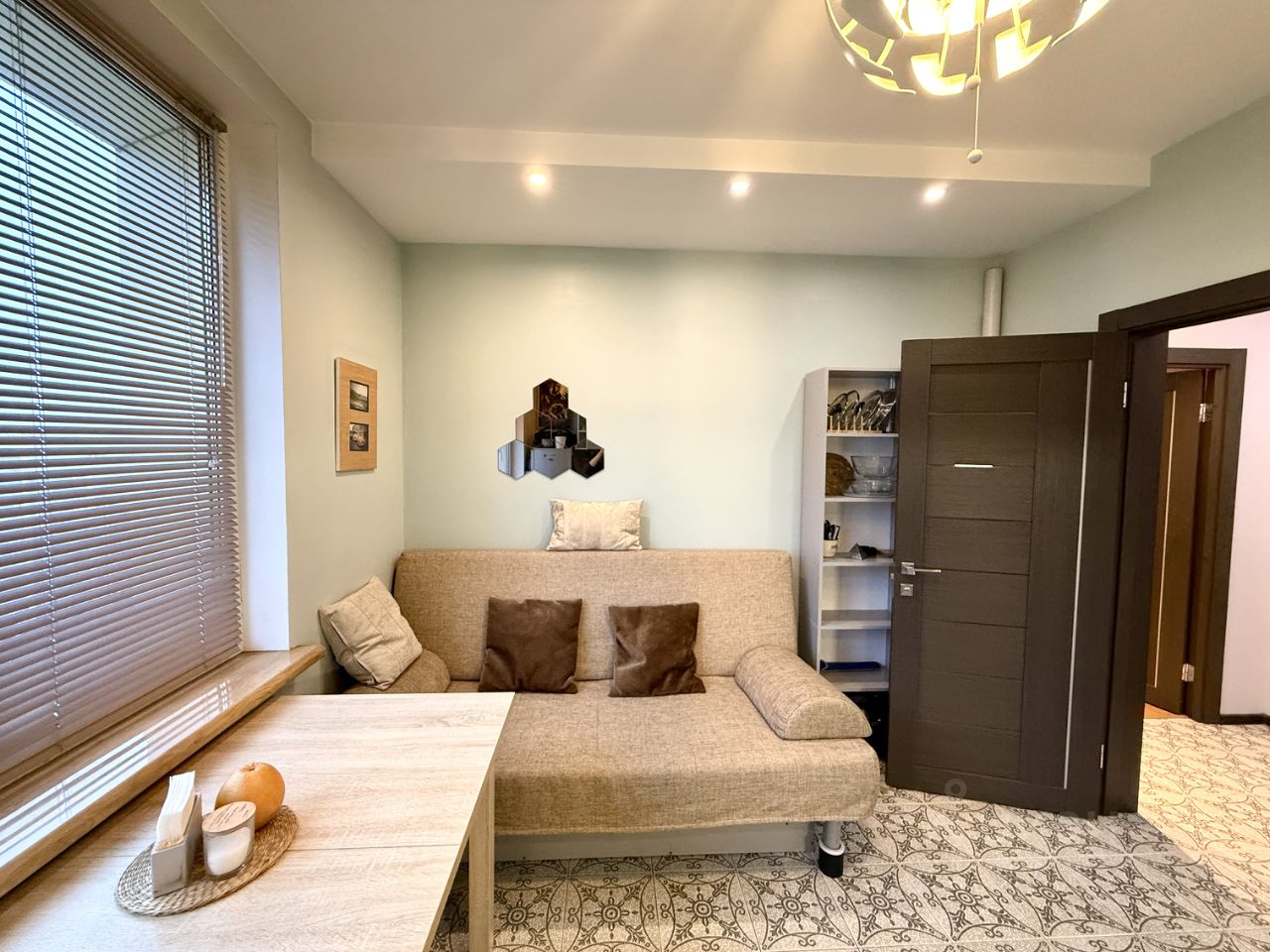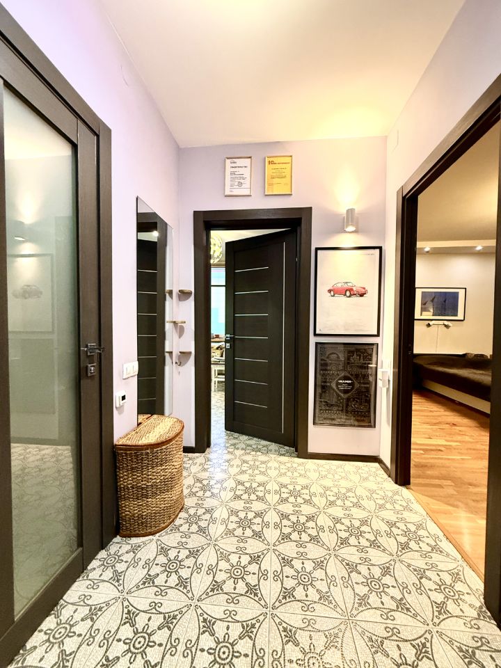 Квартира на высоком этаже с редким видом на городской урбанистический пейзаж, полностью обустроена для комфортного проживания:
