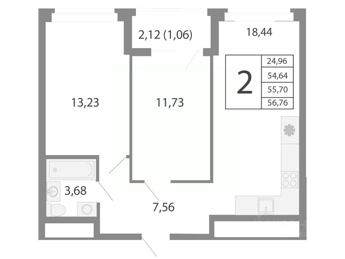 Общая площадь55,5 м2