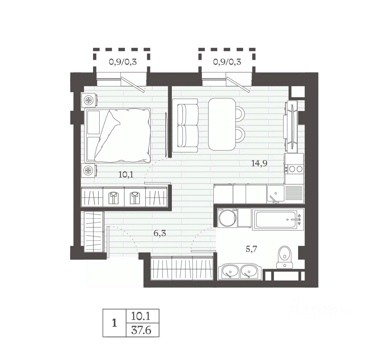 Большие окна и обширные лоджии создают световую галерею: естественный свет зонирует планировку на световые поля, а вечерняя палитра горизонта становится частью дневной эстетики