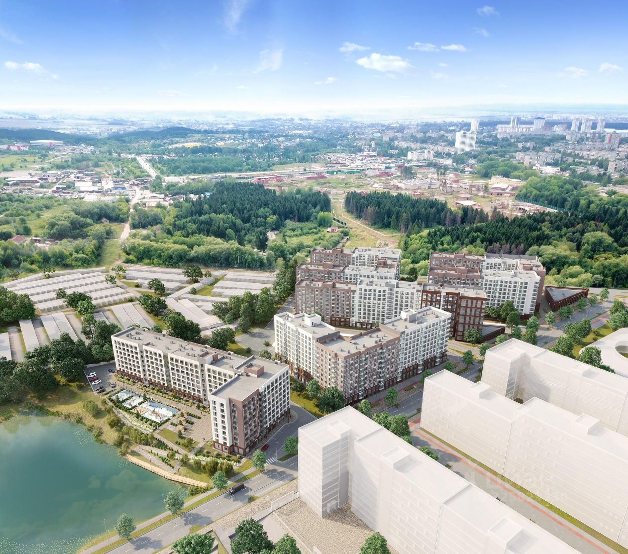 НОВЫЙ ПРОЕКТ С ДОСТУПОМ К ПРИРОДЕ И РАЗВИТИЕМ ТЕРРИТОРИИ Кварталы между озером и парком Свобода - это малоэтажный жилой комплекс в Индустриальном районе Перми с собственным муниципальным детским садом, торговым центром и набережной с озером во дворе.
