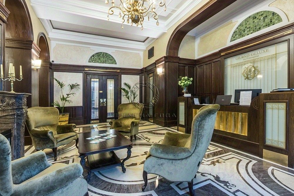 Здание украшают эксклюзивные панно из итальянской мозаики с гербом дома и растительным орнаментом, изображающим вьющийся плющ, французскими балконами с коваными решетками и витражными окнами.
