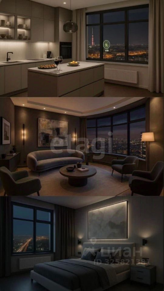 Квартира свободной планировки с высокими потолками и большими окнами, что в купе дают большое пространство для реализаций смелых проектов. Вид открывается на ВДНХ, Запад Москвы. Потрясающие закаты с высоты птичьего полета!