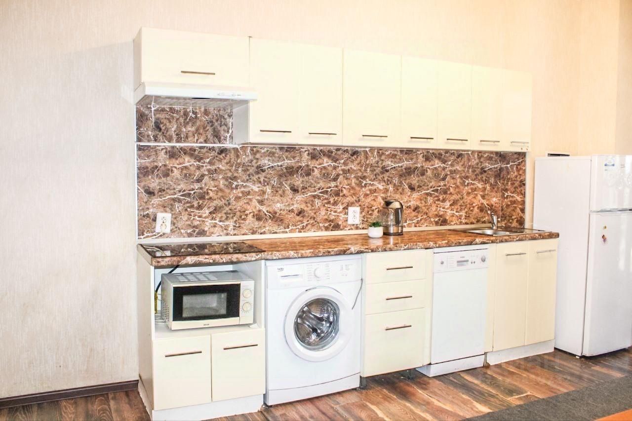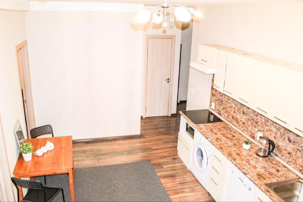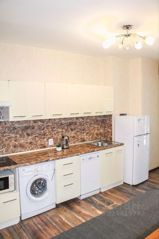 В квартире выполнен дизайнерский ремонт, создающий уютную и современную атмосферу. В наличии вся необходимая мебель: на кухне и в комнатах. Из техники есть холодильник, посудомоечная машина, телевизор и стиральная машина. Санузел совмещённый, оборудован ванной. Есть уютная лоджия для отдыха.