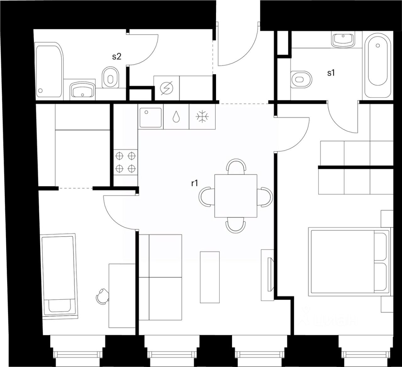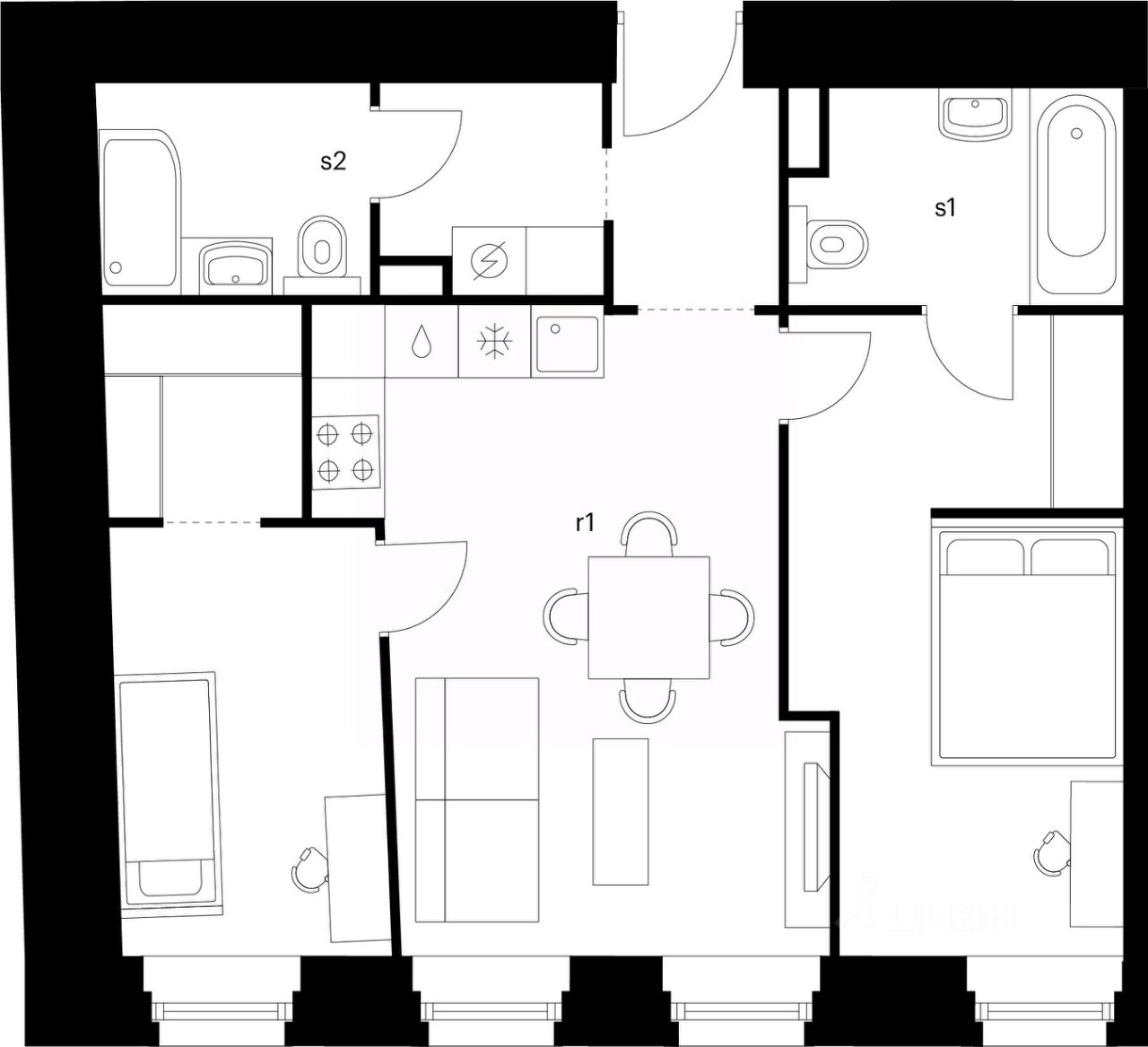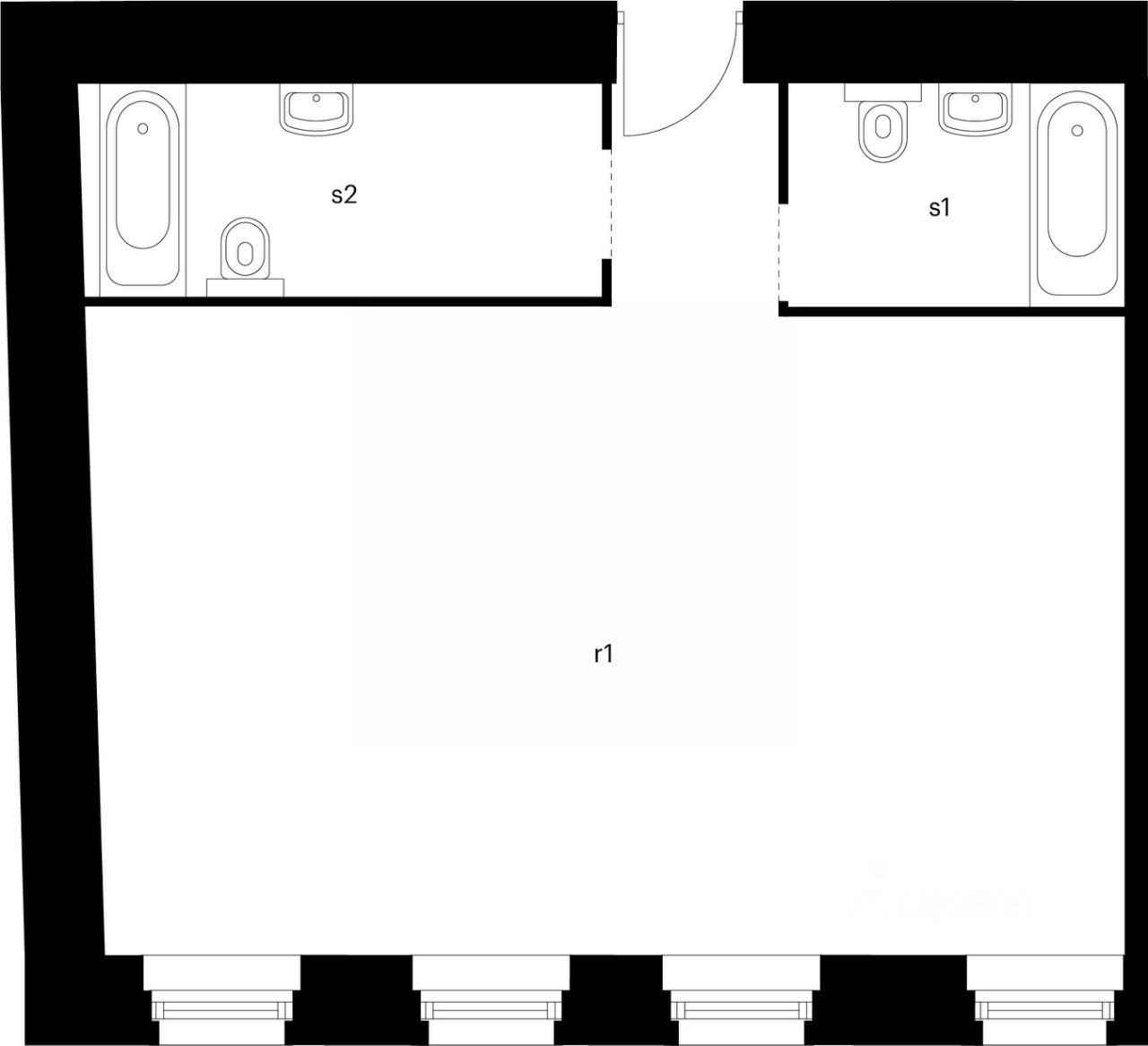 В продаже 1-комнатный апартамент 60,6 м2 со свободной планировкой и высокими потолками 3,3 м до верхней части перекрытия.