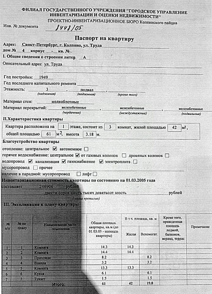 1-26, Продам 3х комнатную квартиру в кирпичном малонаселённом доме 1949 года постройки. Квартира двухсторонняя. Комнаты изолированные 14,3+14,4+13,3, Просторная прихожая. Потолки высокие 3,18 м, что визуально увеличивает пространство. В комнатах стеклопакеты. Стены толстые, кирпичные поэтому в квартире зимой тепло. Перекрытия железобетонные. Удобное расположение дома, хорошее транспортное сообщение. Дом находится в 5 минутах ходьбы от железнодорожного вокзала. Всего 39 минут на электричке и Вы на Невском проспекте. Рядом с домом автобусная остановка. В шаговой доступности детский сад, школы, почта, аптека, отделения банков, магазины, кафе, парки, скверы. Во дворе дома расположена детская площадка, есть парковочные места для автомобилей. Квартира в собственности более 5 лет, один собственник.
