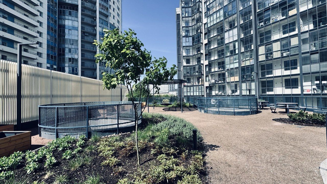 12 этажей и всего 244 квартиры, закрытая территория, доступ к камерам видеонаблюдения в мобильном приложении, доступ в парадную по Face ID, служба охраны, места отдыха с бесплатным интернетом и скамейками с Usb-зарядкой, зоны Workout, лаундж-зона на эксплуатируемой кровле, игровые площадки.