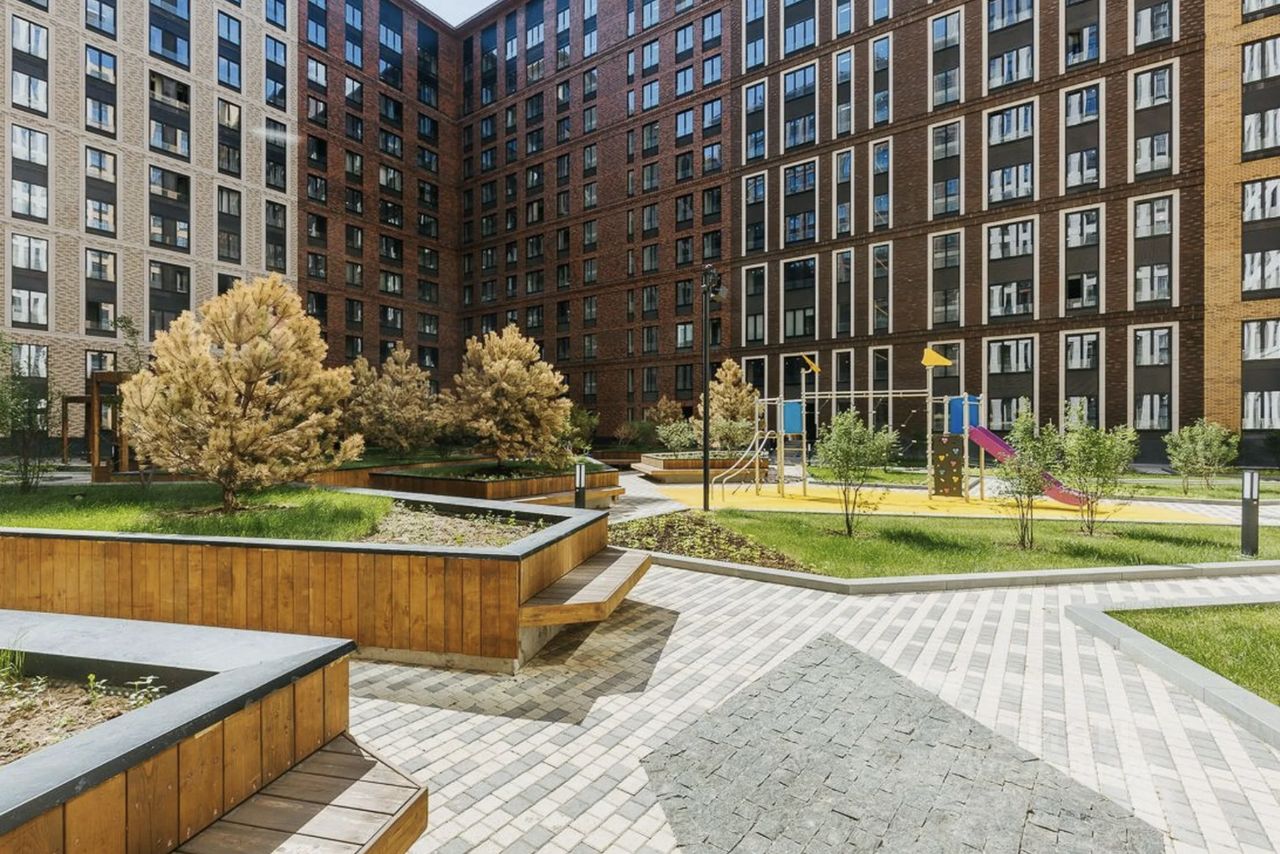 Территория комплекса огорожена, благоустроена и озеленена. Здесь устроены детские игровые площадки и спортивные зоны, места для отдыха взрослых с прогулочными дорожками и уличным освещением территории.