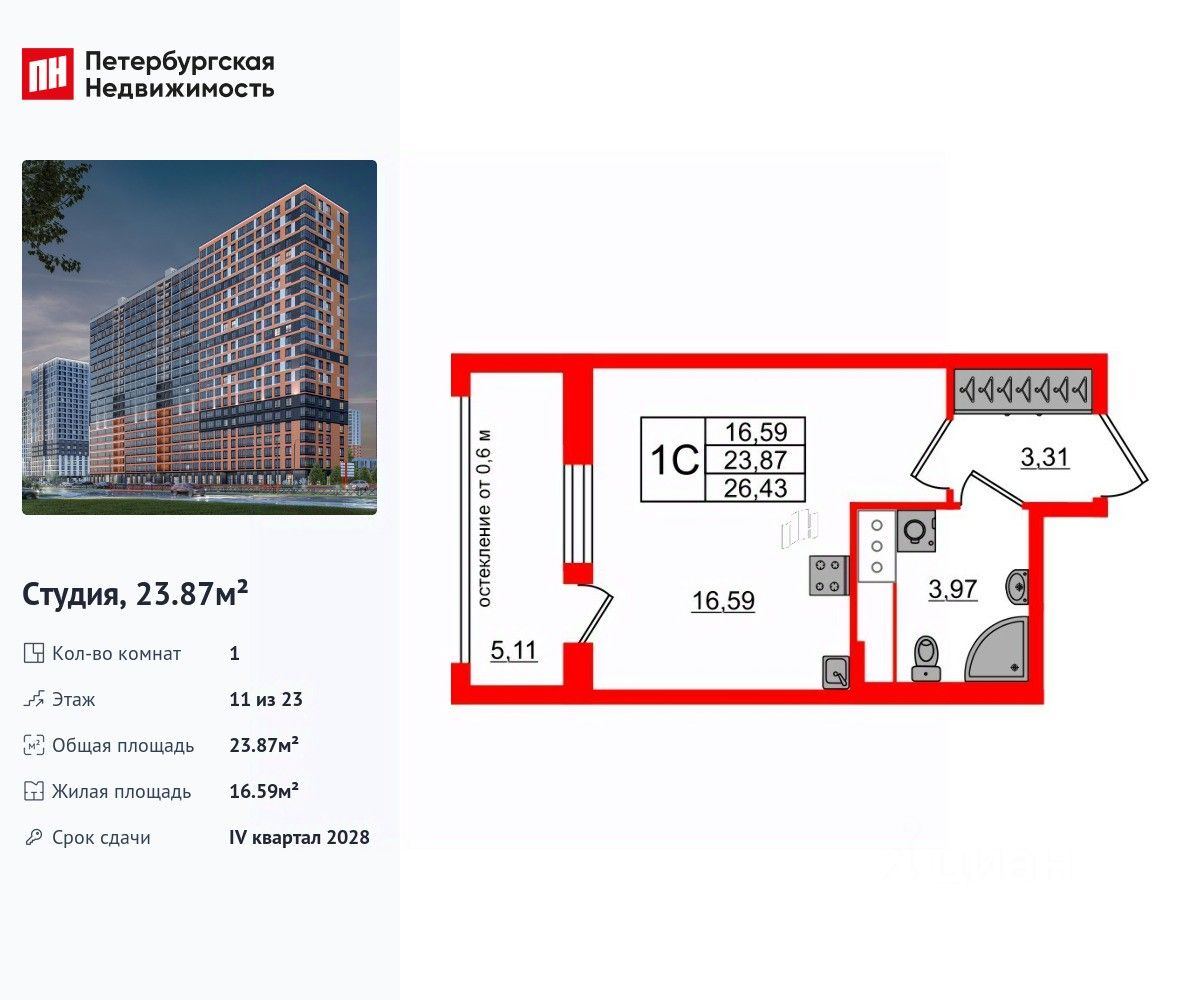 Общая площадь23,87 м2