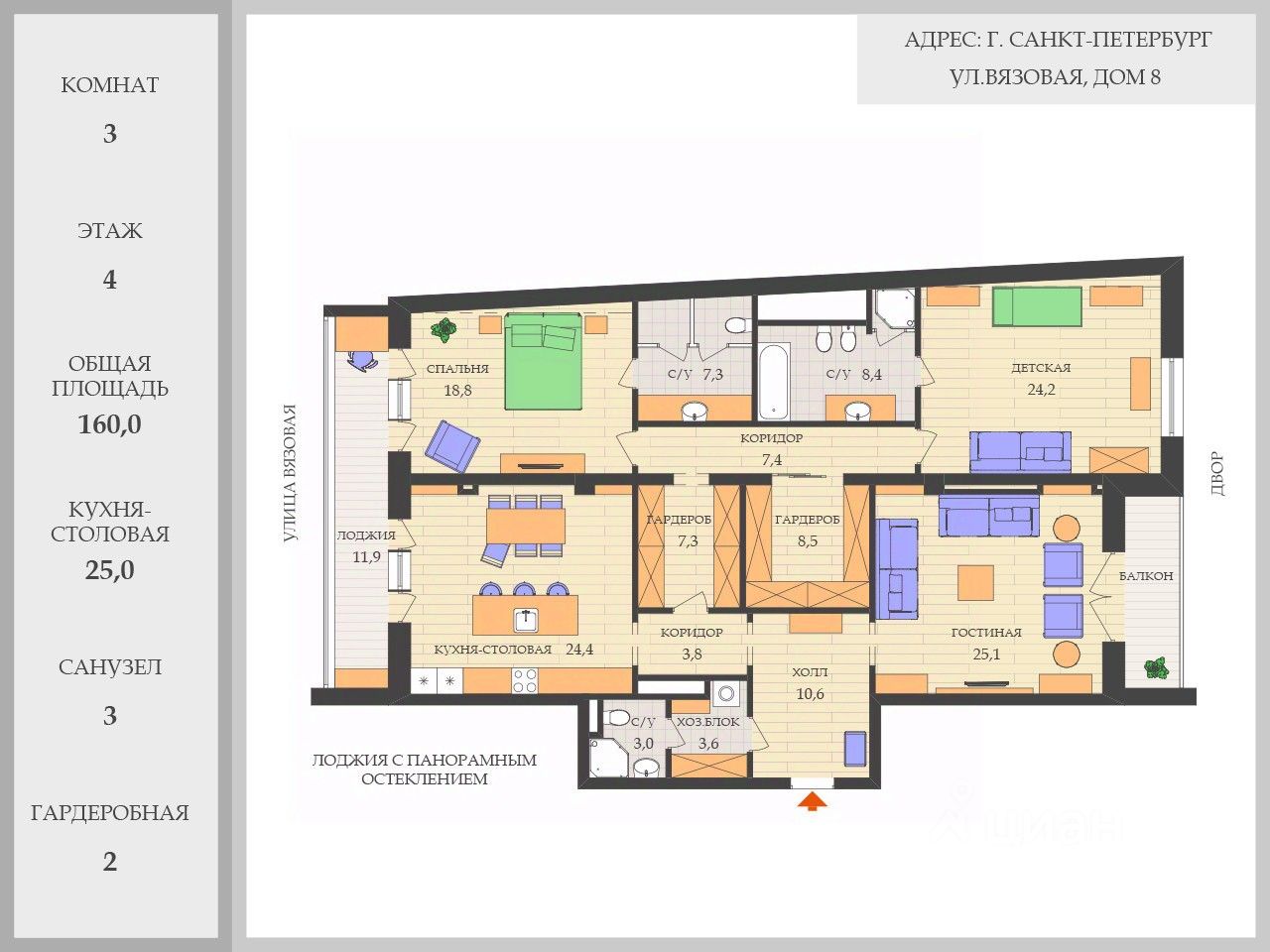 Наша квартира: Изолированная гостиная 25 м. Кухня-столовая 25 м Две МАСТЕР спальни. Три санузла. Две гардеробные. Качественная стильная отделка. Премиальные марки техники и мебели. Бытовая техника - Miele. ОСВЕЩЕНИЕ в квартире - отдельный предмет гордости. ТОП марки. Красиво и стильно. Климат-контроль в каждом помещении. Mitsubishi premium. Большая лоджия с панорамным остеклением. ВИД на Вязовую улицу и во двор на фонтан. Этаж 4 (по ПИБу этаж 6). Парковочное место в подземном паркинге с удобной системой хранения (доп. оплата).