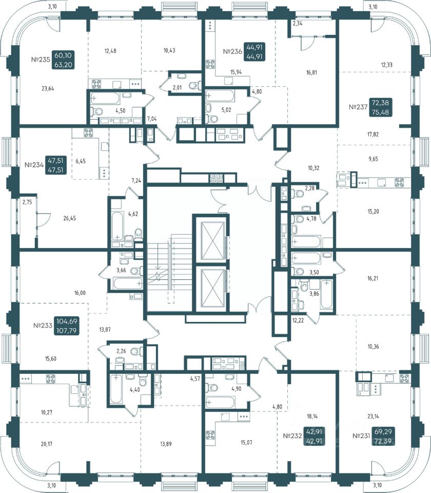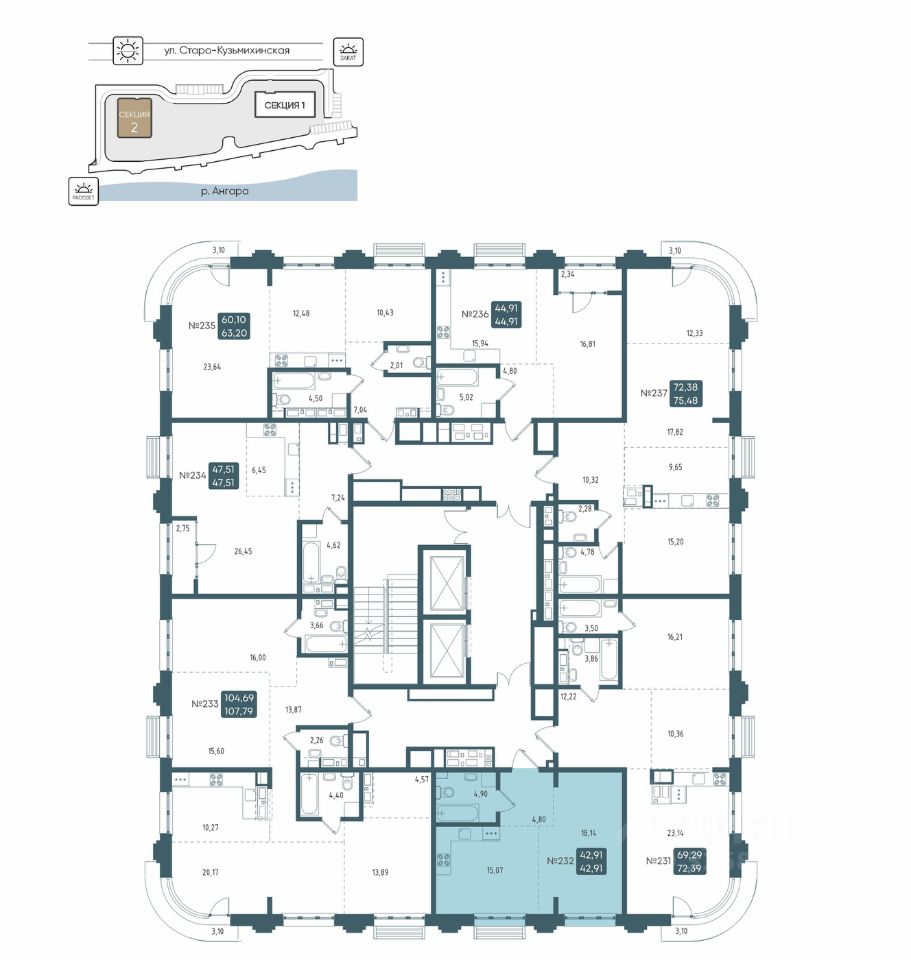 Общая площадь42,91 м2