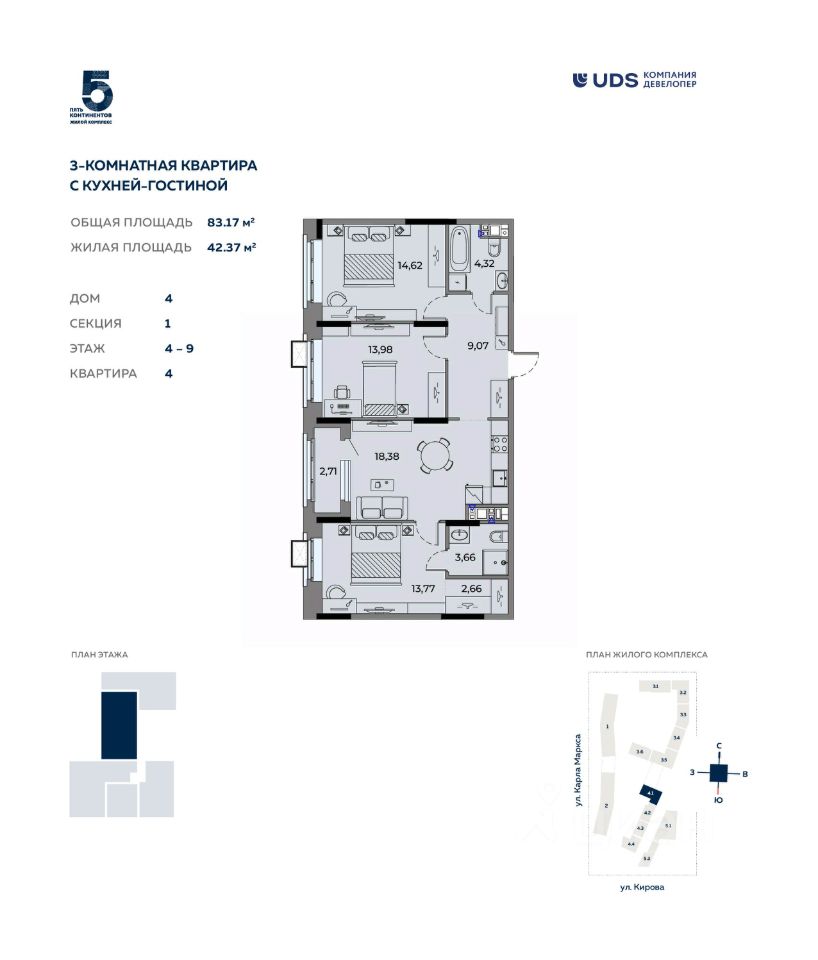 Общая площадь83,17 м2