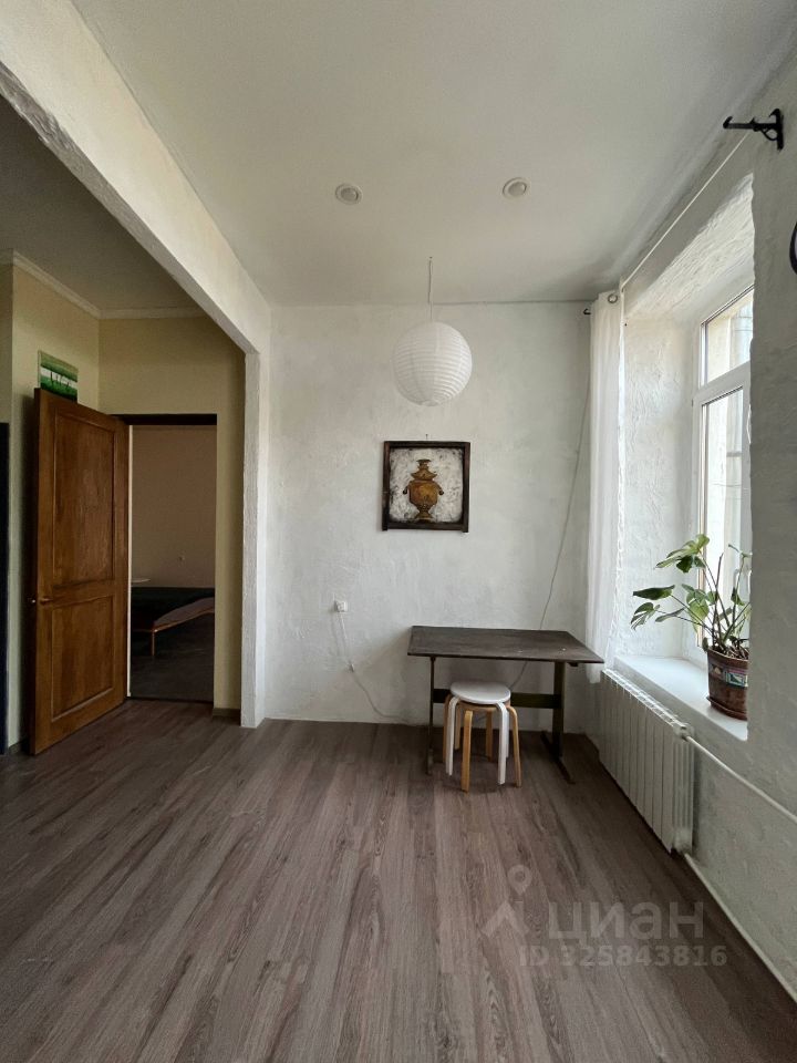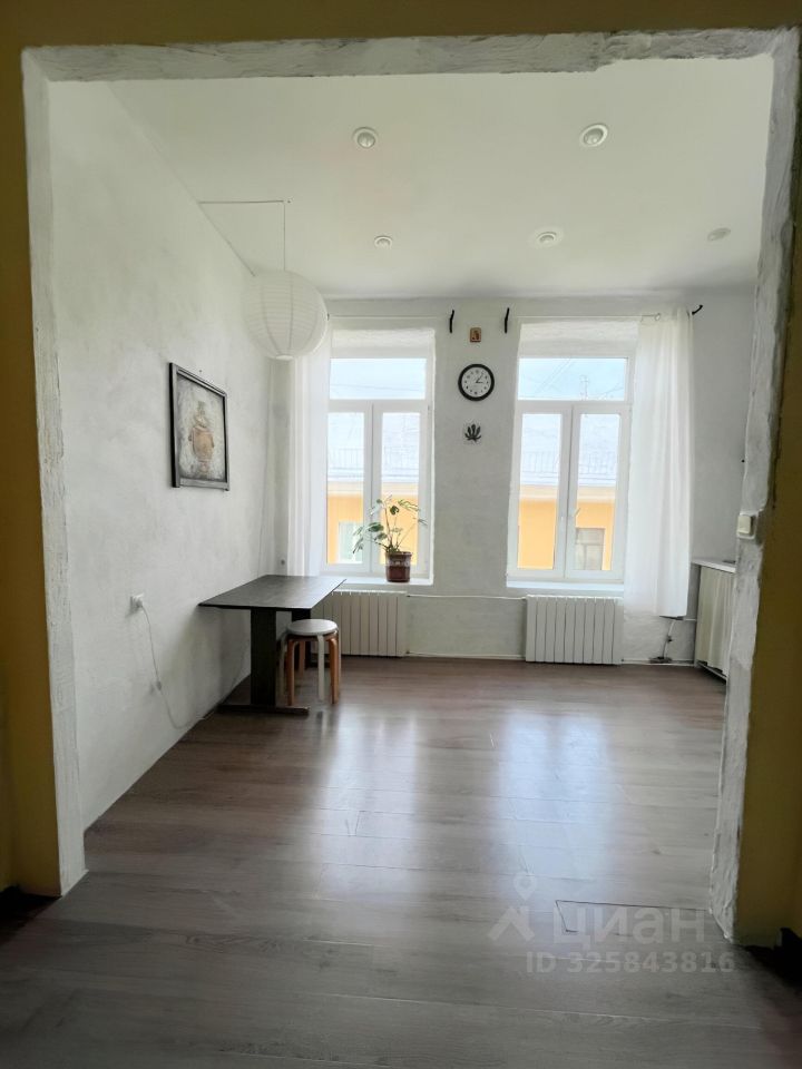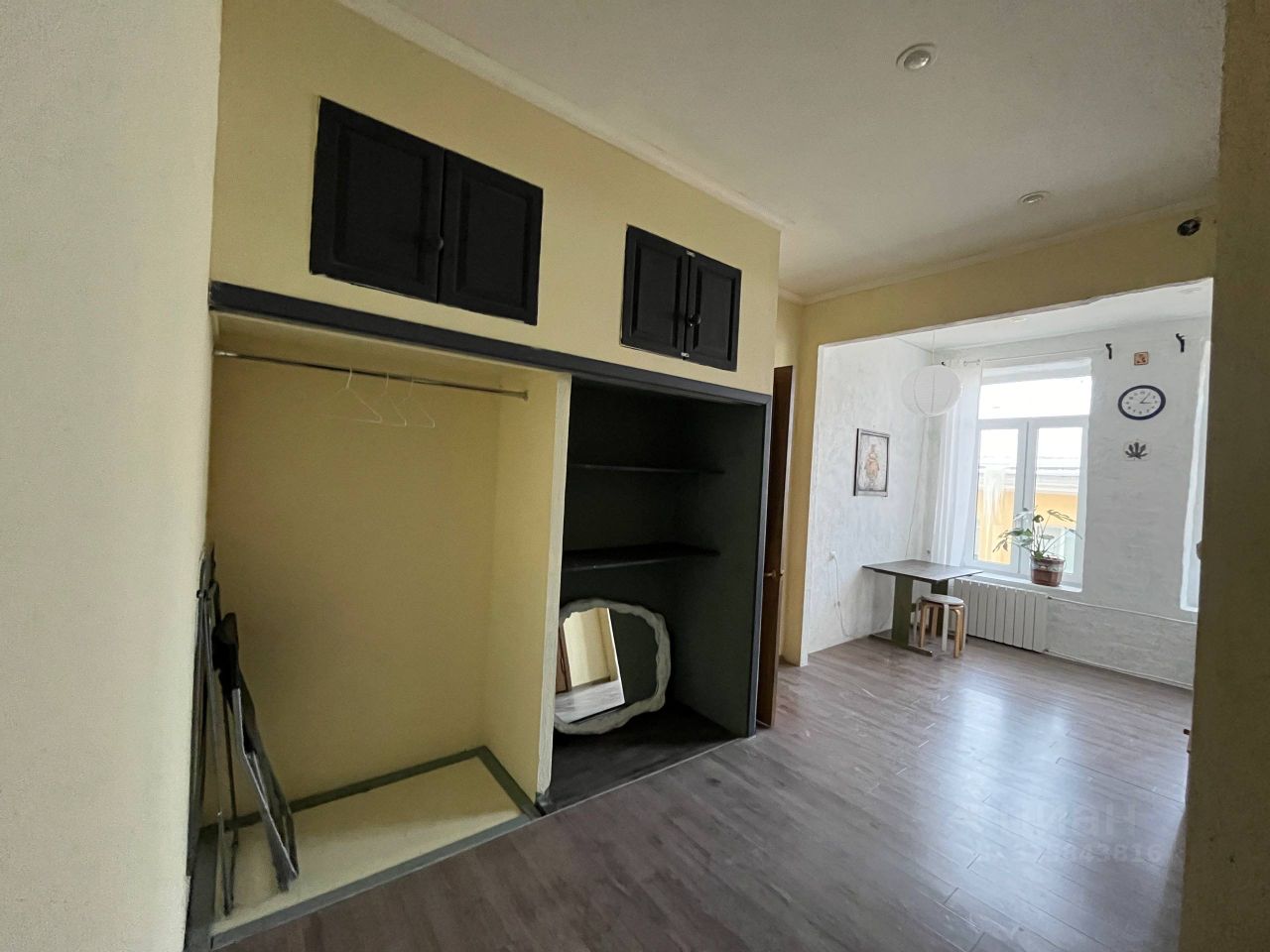 В квартире минимум мебели, ничего лишнего, но есть необходимое. Окна выходят в тихий уютный двор, вид на небо и крыши.