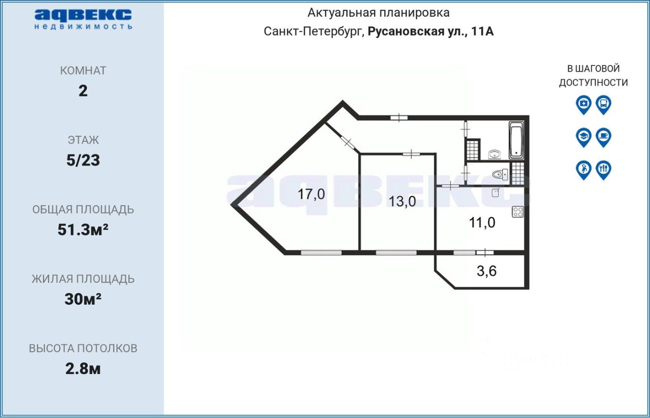 Раздельный с/у, полностью весь в дорогой красивой плитке, балкон 3,6 м с панорамными стеклами. Закрытый двор, консьерж, два паркинга, парковка в закрытом дворе, три детских сада, две школы, спортзал, парикмахерская, химчистка, кафе, транспорт и т. д. — не просто в шаговой доступности, а надо просто спуститься на лифте. Один взрослый собственник.