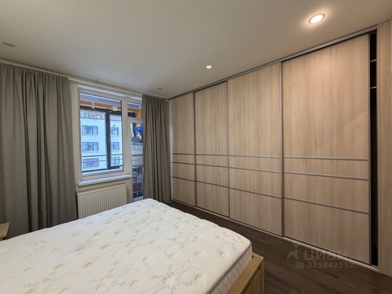 Спальня: двуспальная кровать, 4-створчатый шкаф во всю стену, прикроватные. тумбы с каждой стороны, выход на лоджию, где предусмотрена система хранения и просто комфортно проводить время.