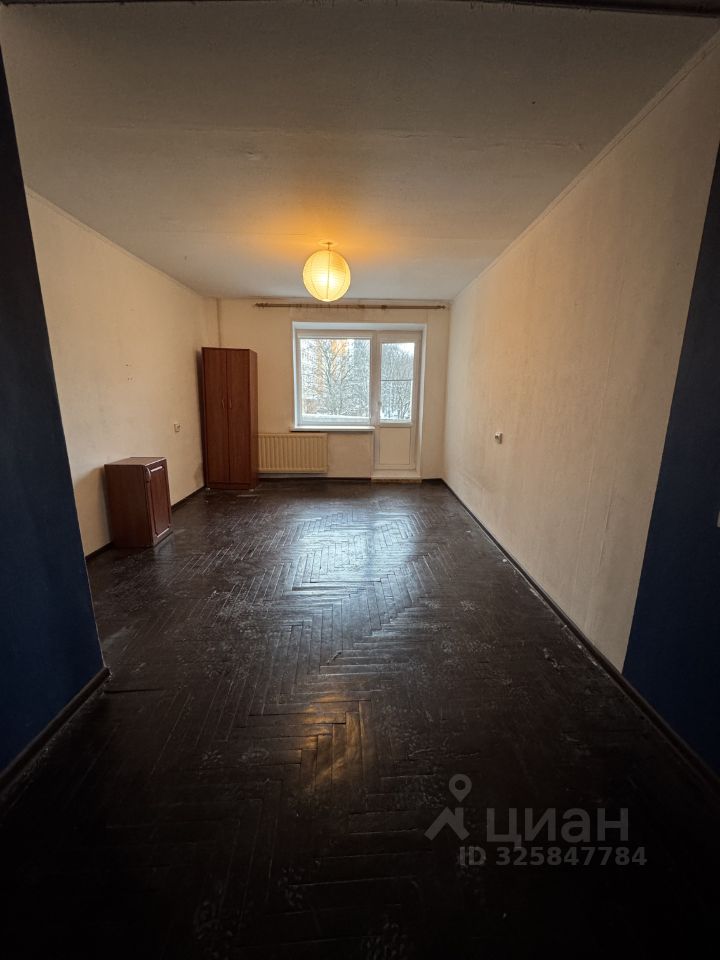 Комната имеет углубление, где хорошо встаёт кровать или гардероб. Есть балкон в комнате.