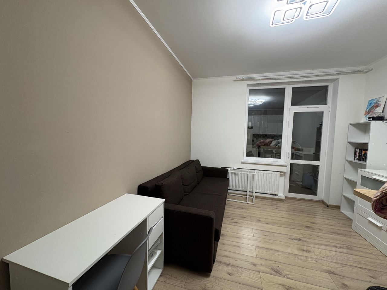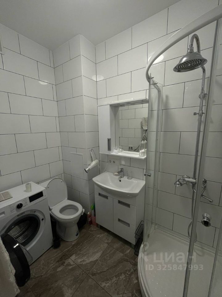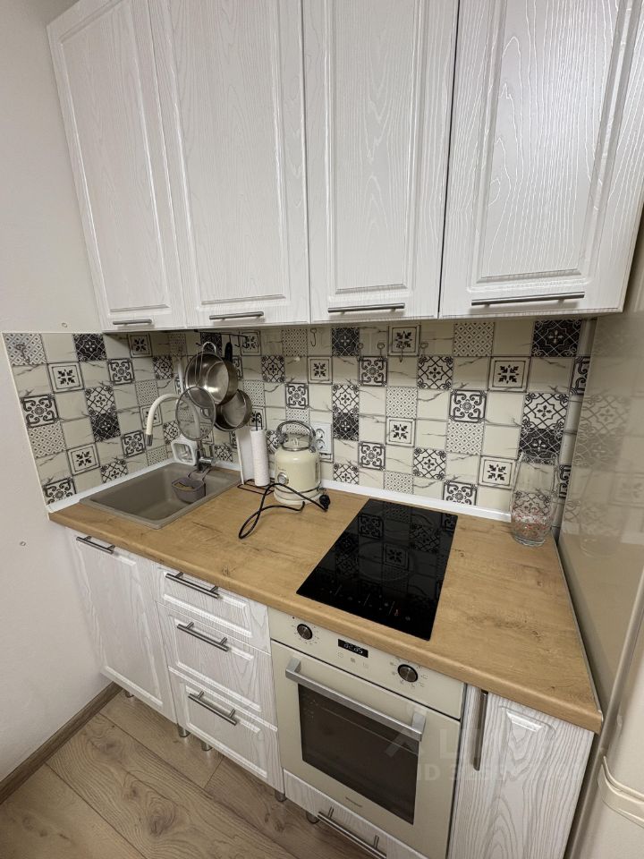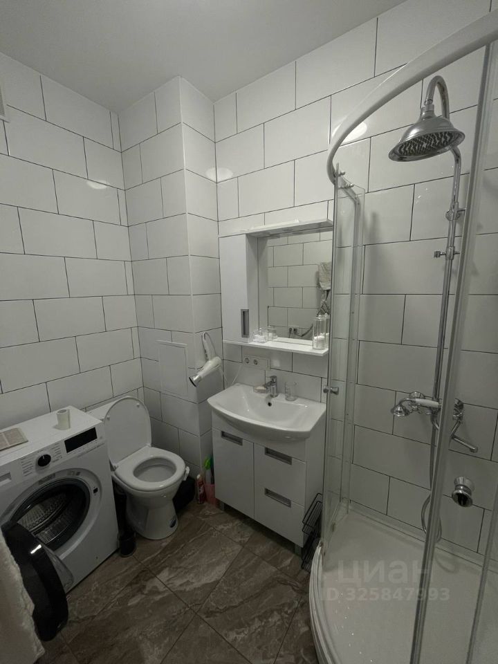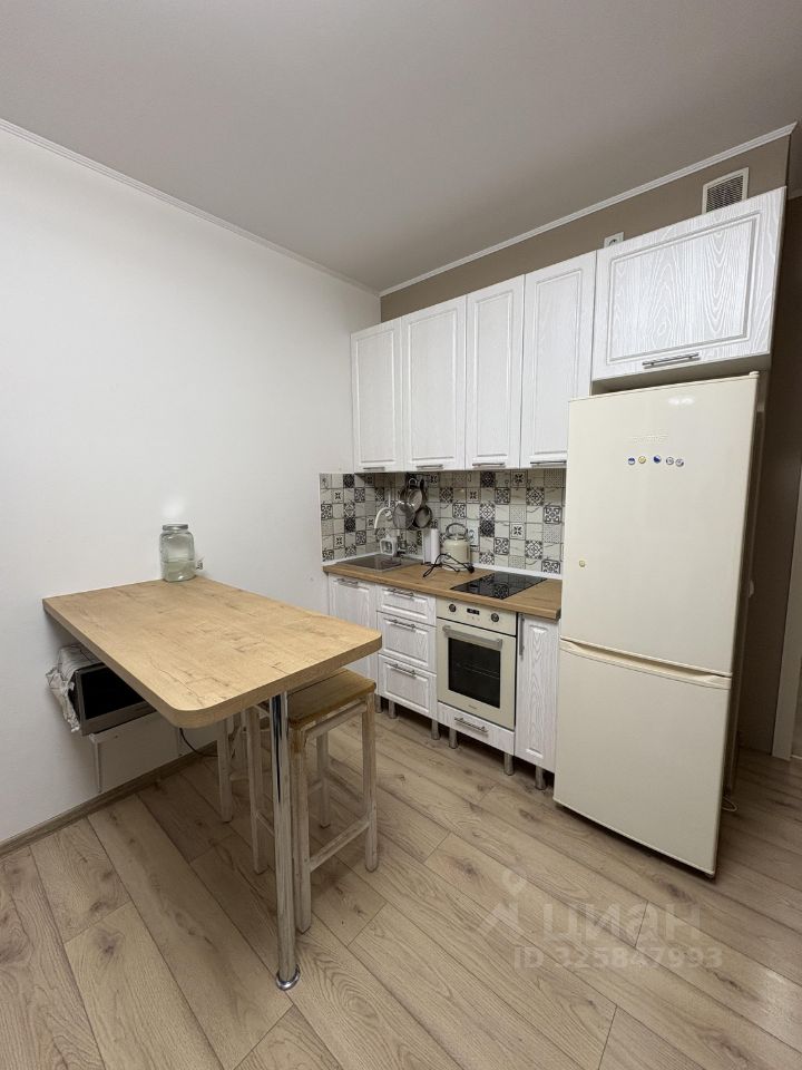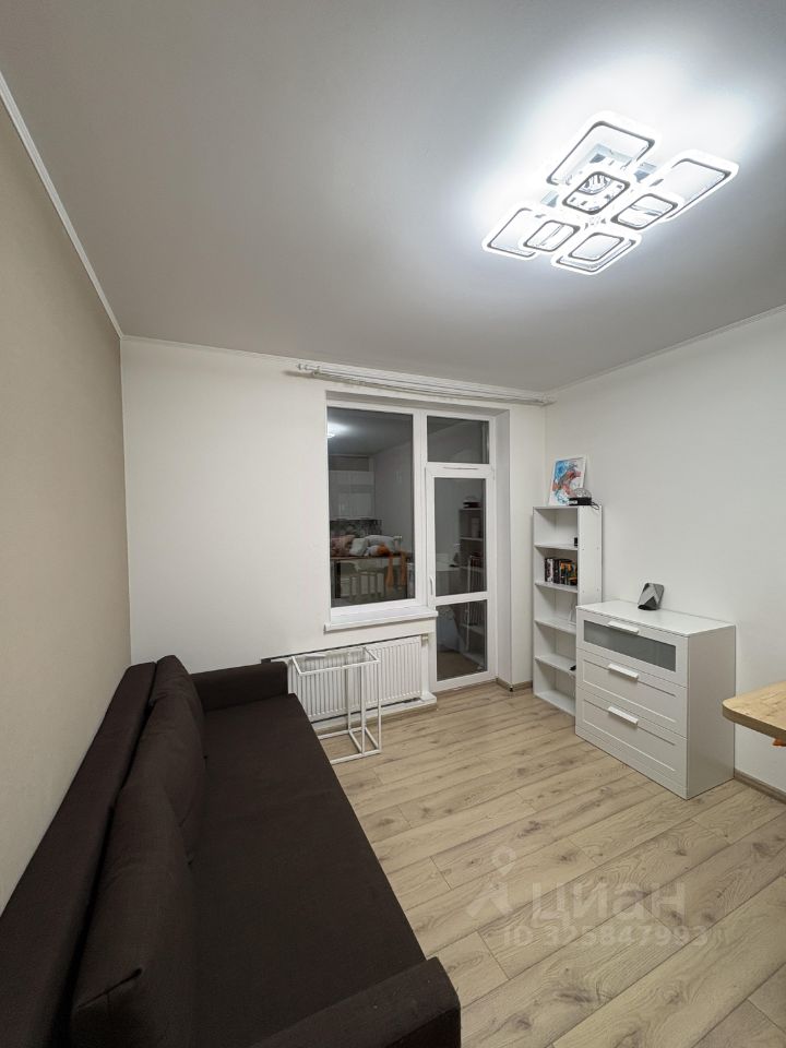 В квартире выполнен качественный евроремонт, выполнялся для себя. В комнате расположен раскладной диван, комод, стеллаж, письменный стол. В кухонной зоне барная стойка с двумя стульями. В квартире есть необходимая техника: холодильник, духовой шкаф, микроволновая печь, стиральная машина. Санузел совмещенный, оснащен душевой кабиной.