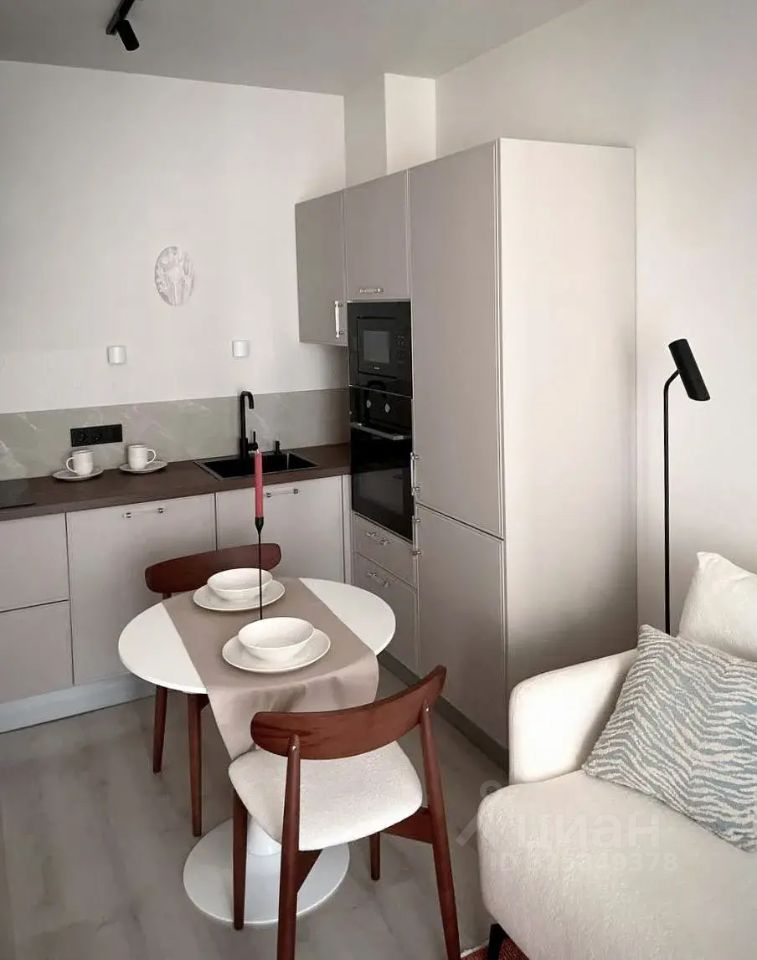 Просторная кухня-гостиная -14,4 м с раскладывающимся диваном (возможность дополнительного спального места.) Современная кухня оснащена всей необходимой техникой. В спальне установлен большой и вместительный гардероб. Есть туалетный столик, при желании- рабочее место.