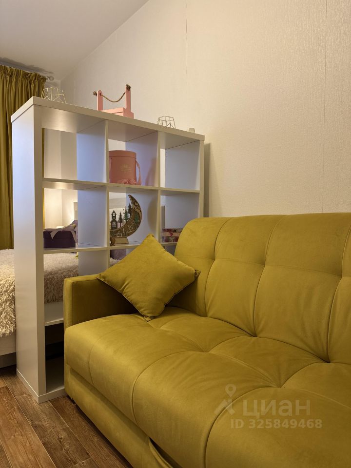 Комната поделена на зоны: Спальня. Гостиная. Рабочее место (есть письменный стол).