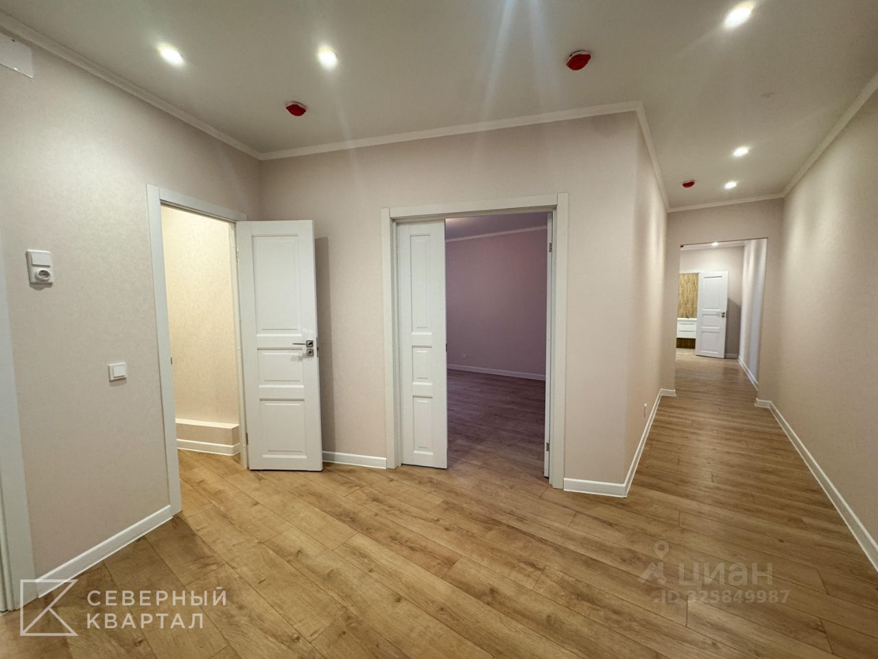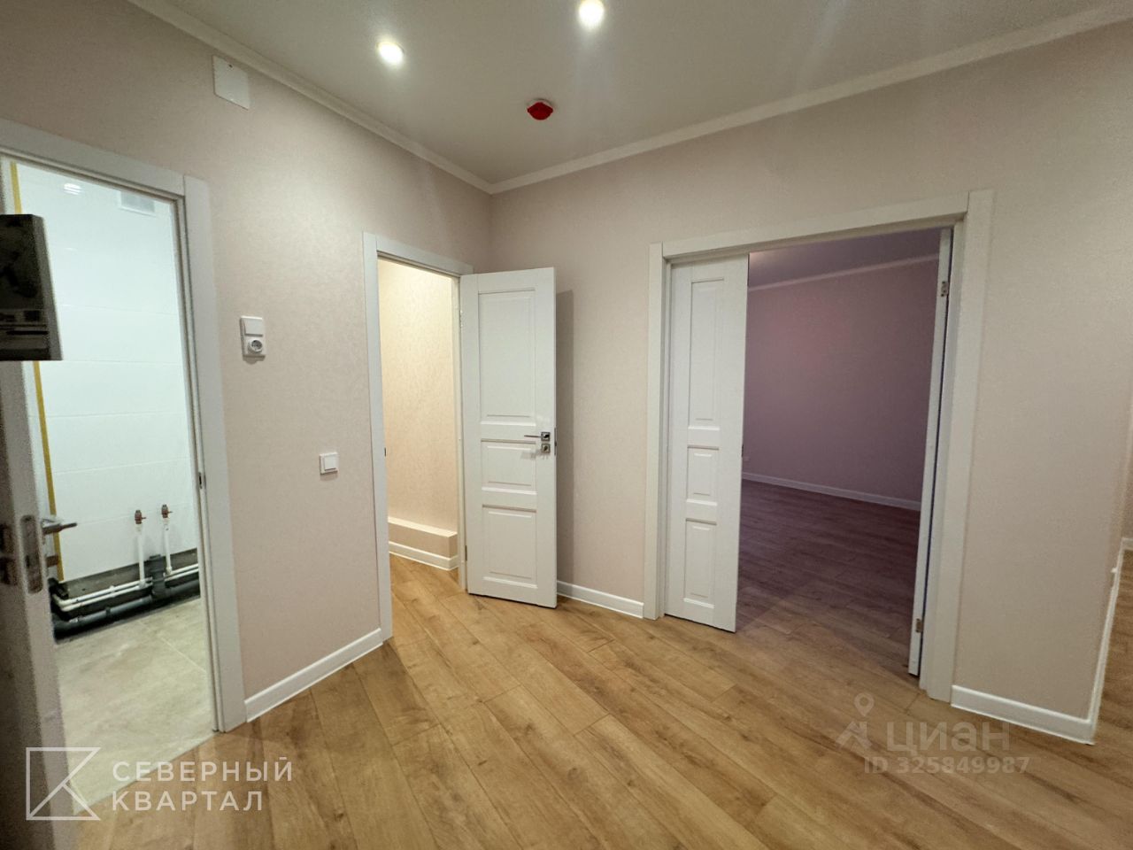 В квартире выполнена отделка ''Морошка'': стены оклеены обоями теплого оттенка(под покраску), на полу - ламинат, потолки - натяжные, в санузлах на полу и стенах керамическая плитка, установлена качественная сантехника, на балконе пол выложен плитой, потолок окрашен, установлены межкомнатные двери и качественная металлическая дверь. Квартира полностью готова к проживанию.