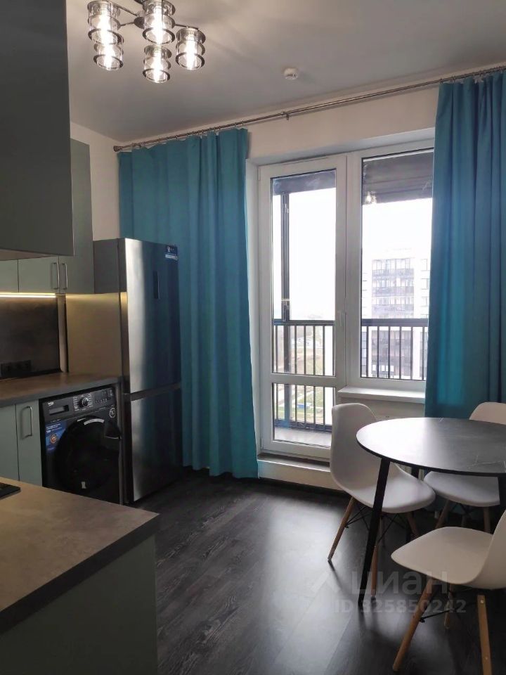 Сдаётся современная однокомнатная квартира в новом доме 2022 года постройки. Уютная и просторная, площадью 38 кв. м, с жилой зоной 18 кв. м и кухней 10 кв. м. Квартира располагается на 22-м этаже 24-этажного монолитного дома. Высота потолков 2.75 метра создаёт ощущение простора и света. До метро можно добраться на автомобиле за 10 минут.