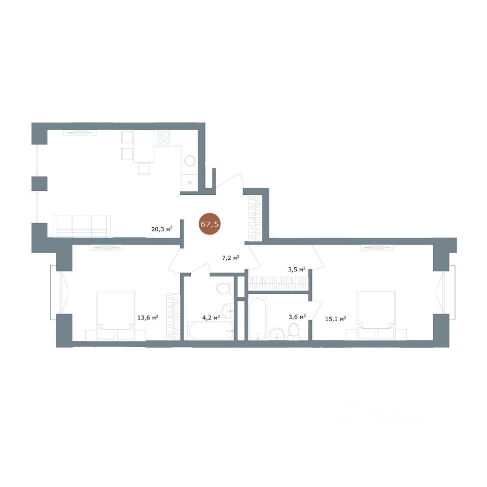 Общая площадь67,5 м2