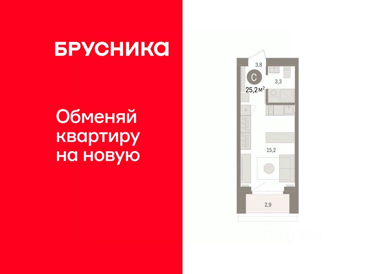 Студия в кварталах ''На Минской''. Особенности планировки: предчистовая отделка. квартиры в нашей базе: МНС01-Ж1.11.3.