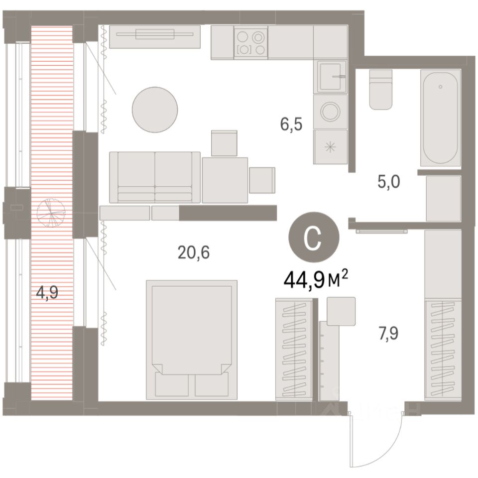 Студия в квартале ''Мылзавод''. Особенности планировки: предчистовая отделка, терраса на крыше. квартиры в нашей базе: МЛ-ГП4.1-8-8.27.4.